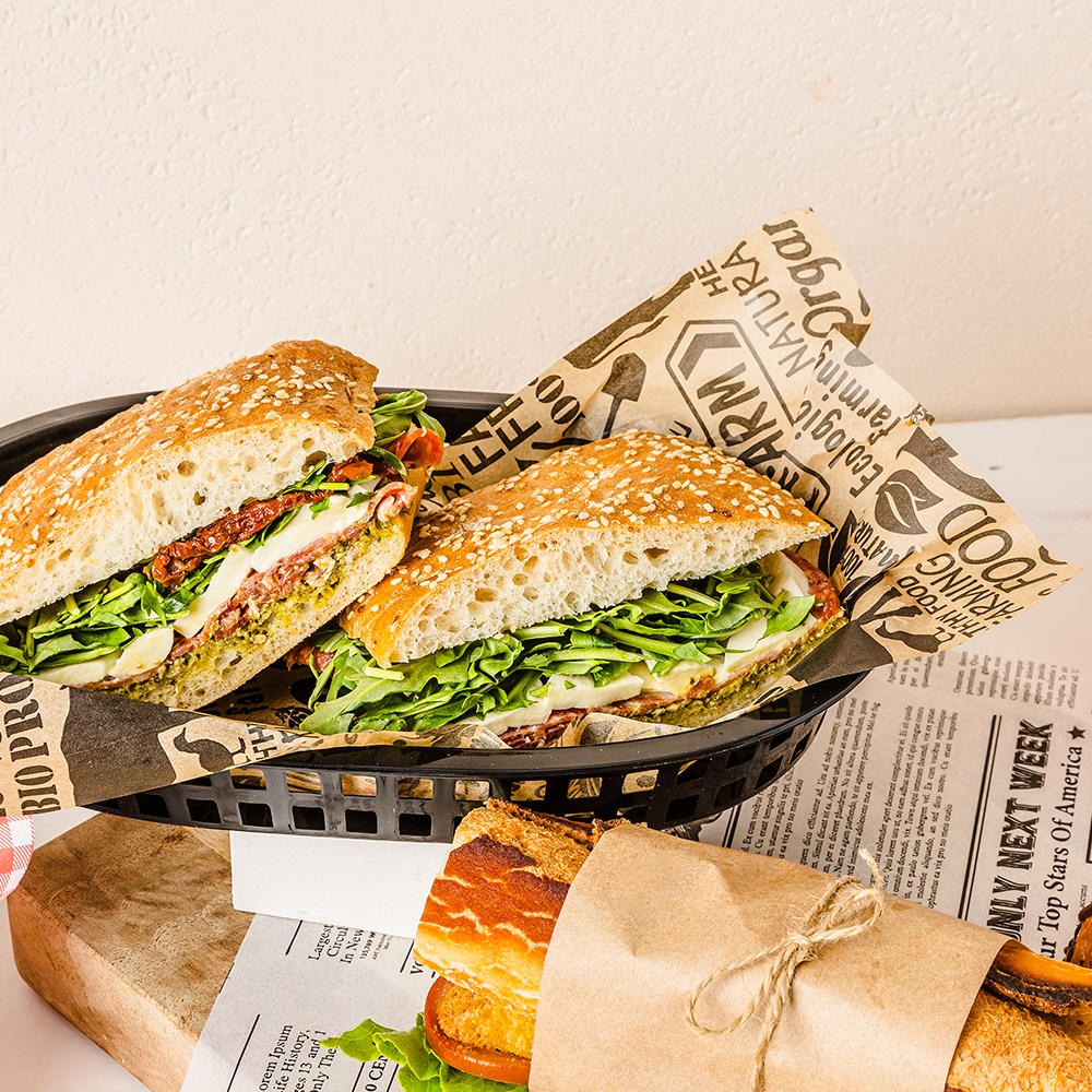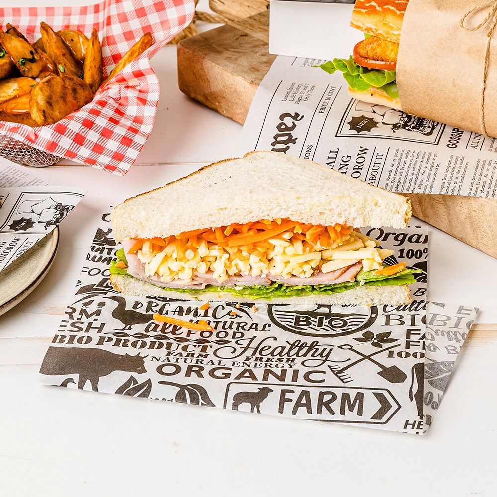 Designed to elevate the dining experience, this Foodie print greaseproof paper adds a unique and modern touch to your presentation. Whether you're serving appetizers, sandwiches, or snacks, its practical design will help make your dishes stand out, impressing guests and enhancing your overall presentation.