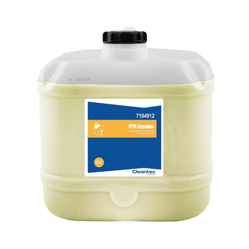 CTR Liquatec Chlorinated Machine Dishwash Detergent 15L Ecolab offers outstanding economy in any water hardness condition, effectively removing tough soils and stains. Its powerful cleaning action ensures that soils are quickly lifted and held in solution, preventing redeposition. The unique self-cleaning formula helps keep wash arms and washer walls cleaner for longer, ensuring optimal performance and reduced maintenance. This detergent is ideal for commercial dishwashing, providing exceptional results on all types of ware.