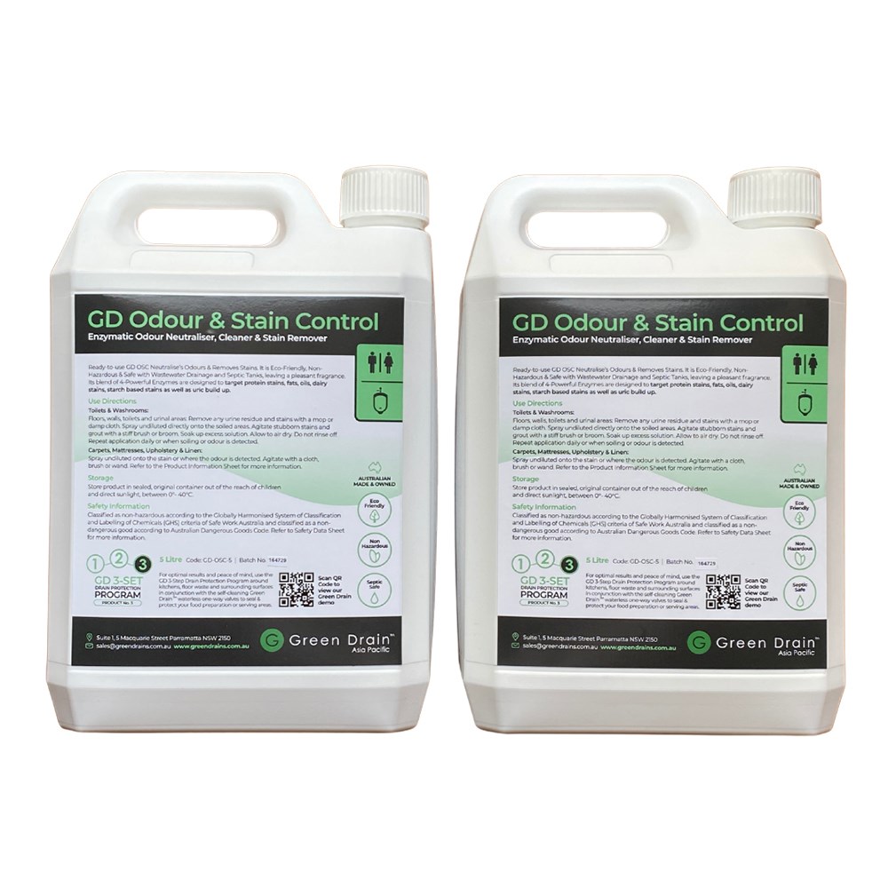 Odour & Stain Control 5L Green Drain is a versatile solution designed to tackle tough stains and eliminate unpleasant odours from hard and soft surfaces. Ideal for use on toilets, washrooms, carpets, upholstery, mattresses, tiles, grout, pavements, and fabrics, including cotton and linen, this product is your go-to for maintaining freshness and cleanliness.