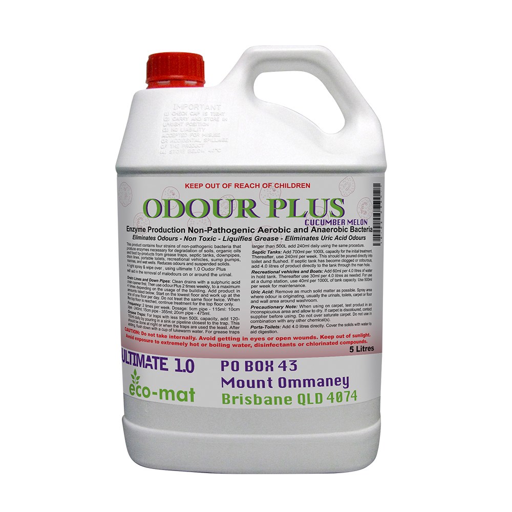 Odour Plus Biological Cleaner Cucumber Melon 5L by Kleaning Essentials is a highly effective and gentle solution designed to tackle stubborn odours in urinals, grease traps, and other areas prone to unpleasant smells. It works particularly well when paired with the ULTIMATE 2.0 urinal screen, enhancing the biological cleaning process for a more thorough clean. Containing billions of enzymatic bacteria, Odour Plus targets uric acid and other biological deposits, breaking them down into carbon dioxide and water, which are easily flushed away, leaving surfaces spotless and odour-free.
