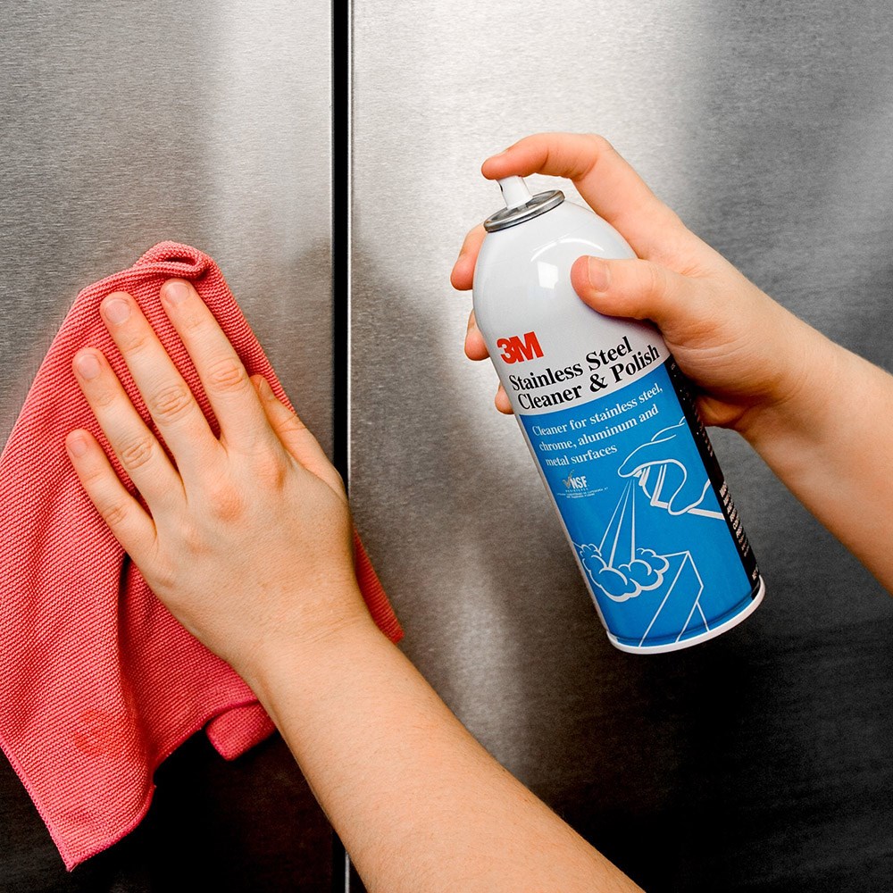 Clean and make stainless steel shine with this 3M Stainless Steel Cleaner and Polish. This product suited to Buffet stations, display fridges, serving counters, elevator doors, and self-serving areas. Suitable for used in food preparation areas, but not suited to use on utensils with direct food contact. Pleasant lime fragrance versatile spray can be used on many surfaces includes steel, chrome, aluminum, and laminated plastic surfaces,
