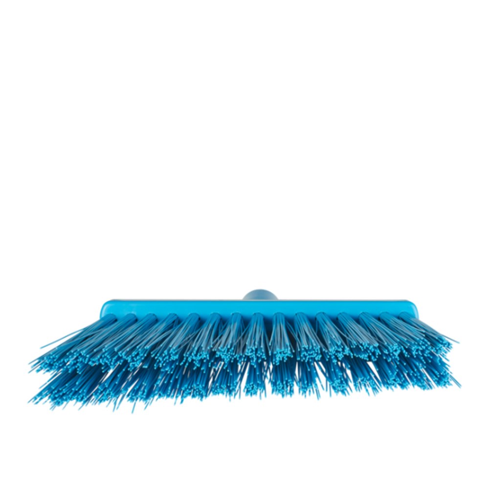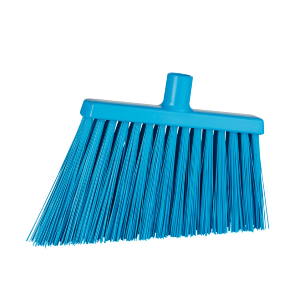The Vikan Lobby Broom Head Angle Cut Blue 290mm is designed to reach tight corners and narrow gaps between equipment in food and industrial environments. The angled bristles are effective on moist surfaces, removing food particles and dirt with ease. Its compact and hygienic design allows for detailed cleaning in high-use zones and service areas. The low-profile design and lightweight construction limit wrist strain experienced during repeated sweeping.