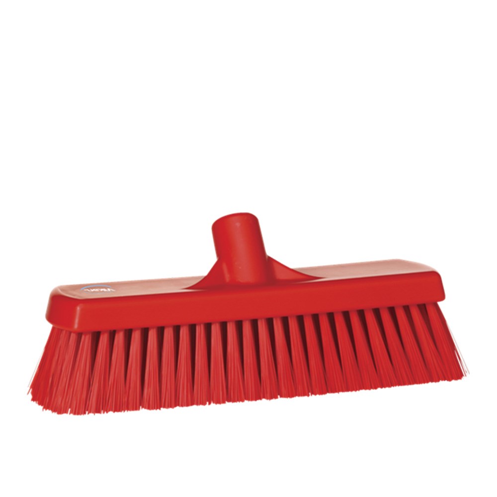 The Vikan Medium Broom Head 305mm in red colour can clean dry substances like flour, starch, and other fine powders commonly found in food production. Its medium-stiff bristles provides balance between firmness and flexibility, ensuring effective cleaning without damaging surfaces. It is compatible with any Vikan handle and is ergonomically designed for easy use and storage. Food grade certified and is available to use in any environment, especially in hygiene-sensitive facilities. Available in other colours, which is perfect for coded options to prevent cross-contamination