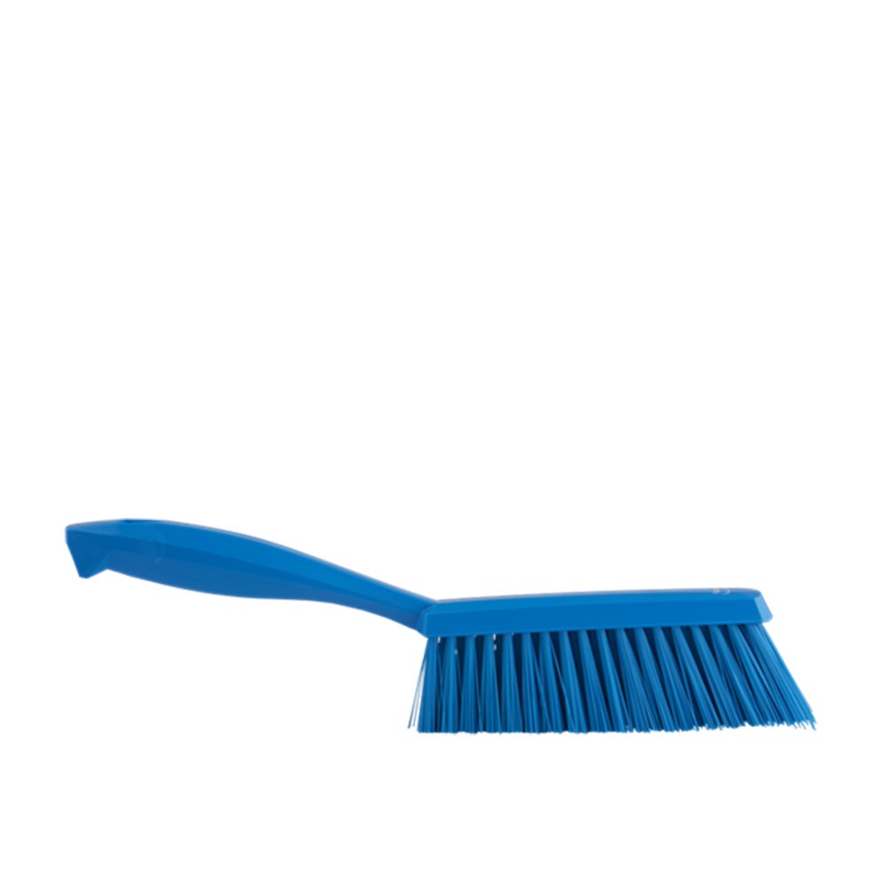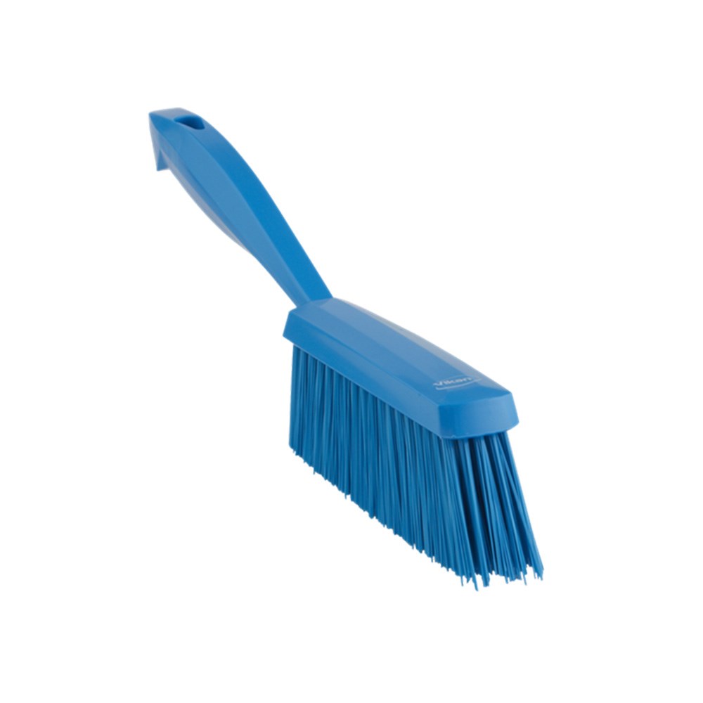 Remove flour and fine particles from conveyor belts, food preparation surfaces, tables, and equipment with the Vikan Bannister Brush with Medium Bristles 330mm in blue. Perfect to pair with the Vikan dustpans, it is an efficient way to remove and clean dirt and food debris. With its medium-stiff food-grade bristles, it can remove fine powders without scratching delicate surfaces. Its ergonomic handle provides comfort but ensures it won't slip while reducing fatigue during repeated use.