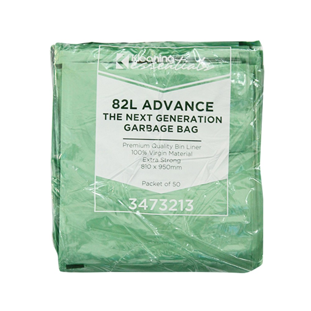 Advance Next Generation Garbage Bags Green 82L Kleaning Essentials offer superior strength and puncture resistance for reliable waste disposal. Made from durable green MDPE, these lightweight yet extra-strong bags provide an efficient and sustainable solution by using fewer materials and less energy in production.