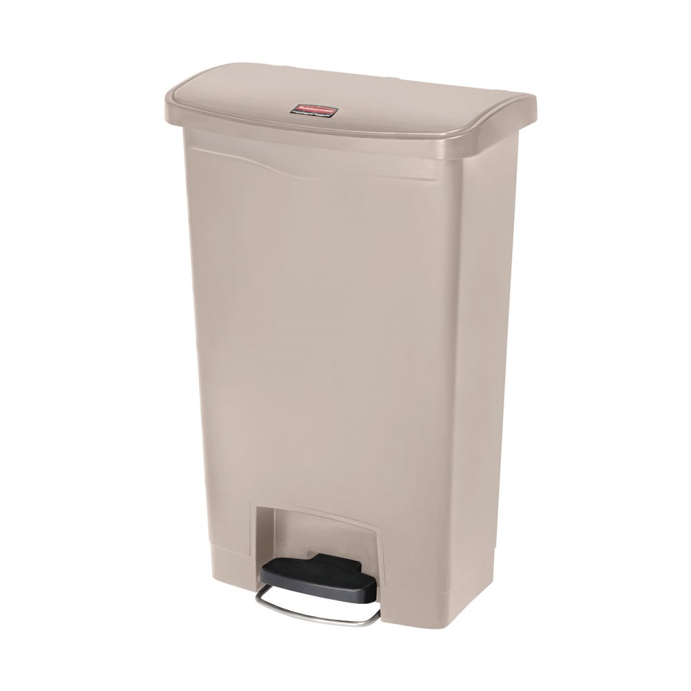The Slim Jim 50L Front Step Bin Beige Rubbermaid is built for efficient, hands-free waste disposal in compact spaces. Its slim design and small footprint make it ideal for hospitality, healthcare, and commercial use. The large foot pedal provides easy access, while the tight-fitting lid closes softly to minimise noise. An internal hinge protects walls from damage for a neat and safe setup.