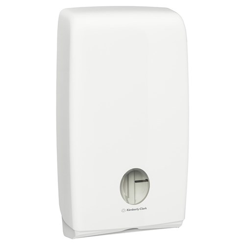 The Kimberly-Clark Optimum Plastic Towel Dispenser boasts a stylish, sleek design in a white, easy-clean, high-gloss finish. This product features a viewing window for quick-refilling only when needed, minimising service time. The single-sheet dispensing method ensures the user touches only the towel used, helping to reduce the risk of contamination and promote good hygiene in the bathroom. Also, it helps to reduce overuse, waste, and cost.