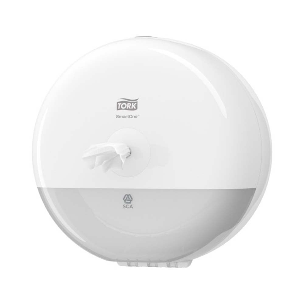 • Tork T9 SmartOne toilet roll system dispenses one sheet at a time