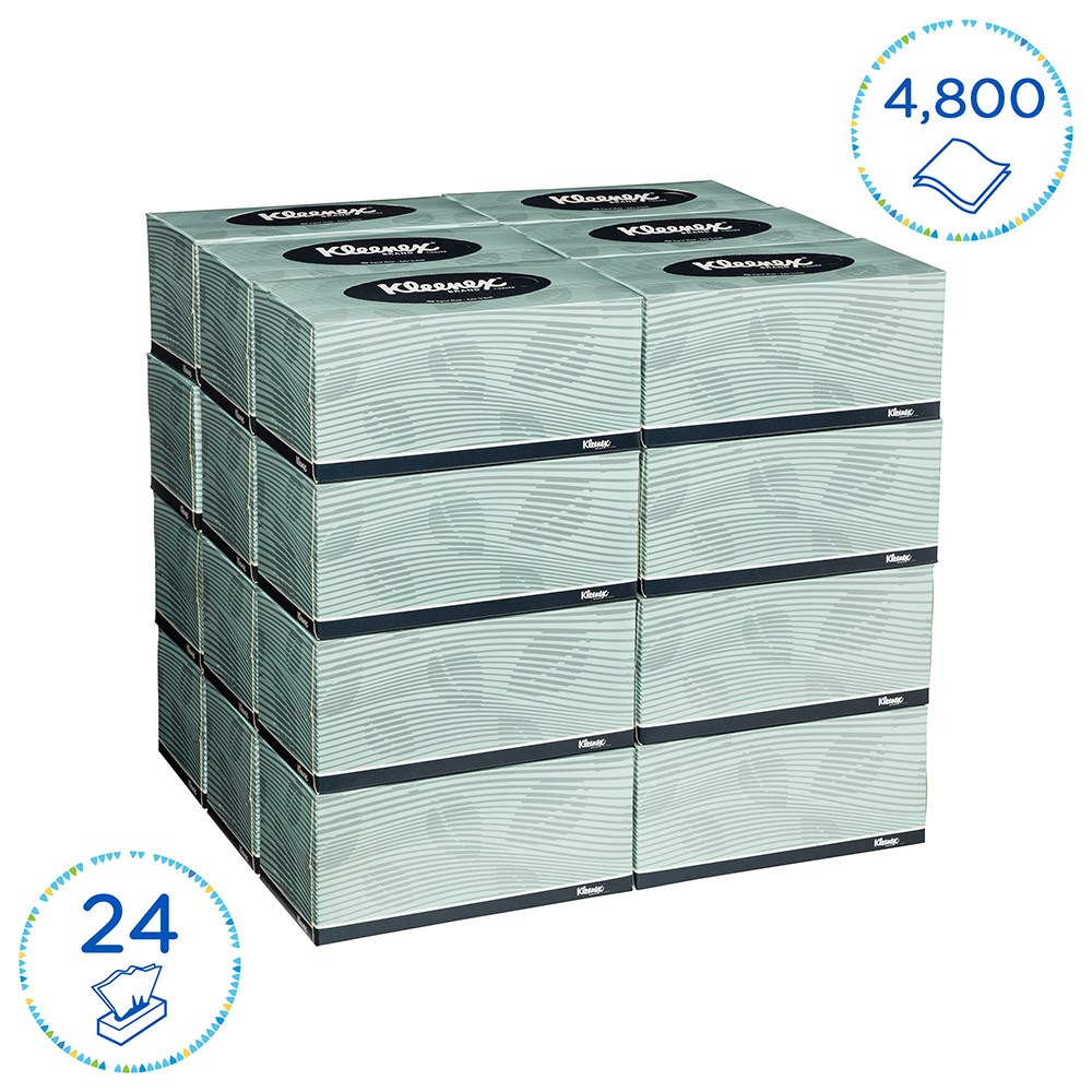 One box of KLEENEX® facial tissues contains 200 tissues This large box of tissues contains more tissues than any other box in the KLEENEX® facial tissue range These KLEENEX® tissues are made in Australia and are FSC® certified using a sustainable mix of recycled and FSC® Virgin Fibre End of tissue box indication signal sheets reduce the risk of run-outs The box of tissues features a lint guard to protect tissues