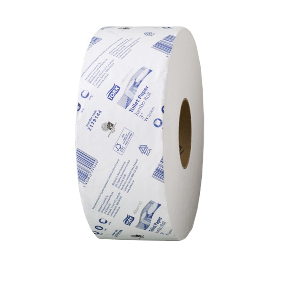 Tork T1 Advanced paper is a quality 2 ply toilet tissue. The Jumbo toilet roll is ideal for busy washrooms and is equal to many conventional toilet rolls. The paper is accredited with NZ Environmental Choice Ecolabel and is FSC certified