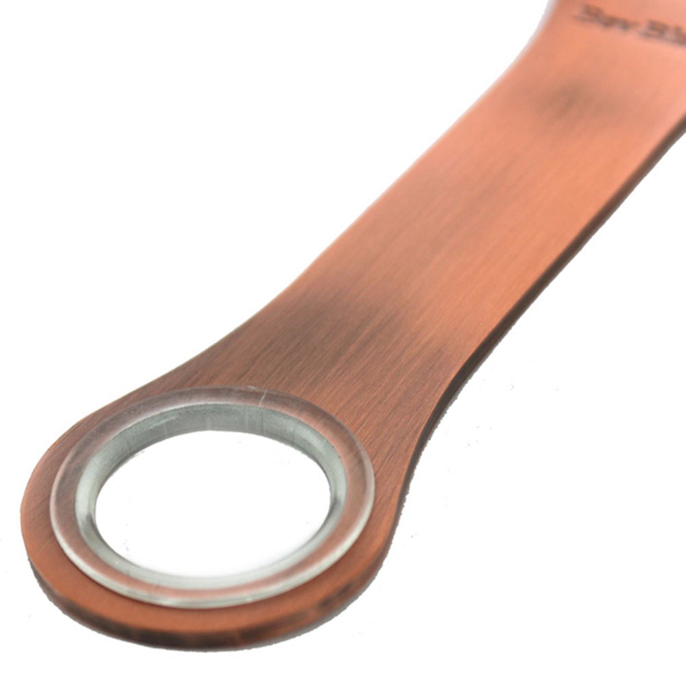 The antique copper Bar Blade with Spin Ring is a must-have tool for any bartender or home mixologist. Made with high-quality stainless steel, it offers durability and precision in opening bottles. The unique spin ring adds a touch of style and makes for effortless use.