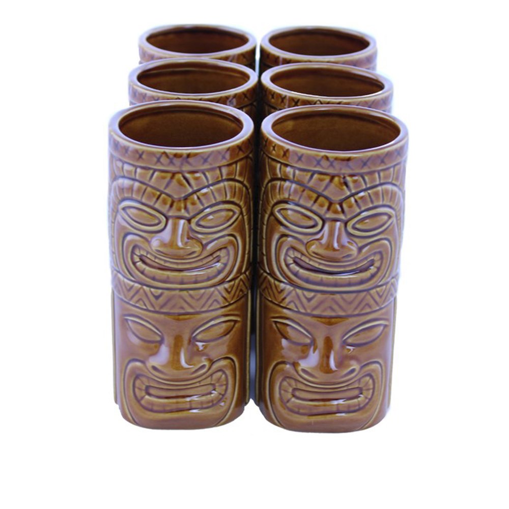 Make a statement with this pack of six Totem 400ml Tiki Mugs in brown - perfect for serving juice, soft drinks, and a range of cocktails.
