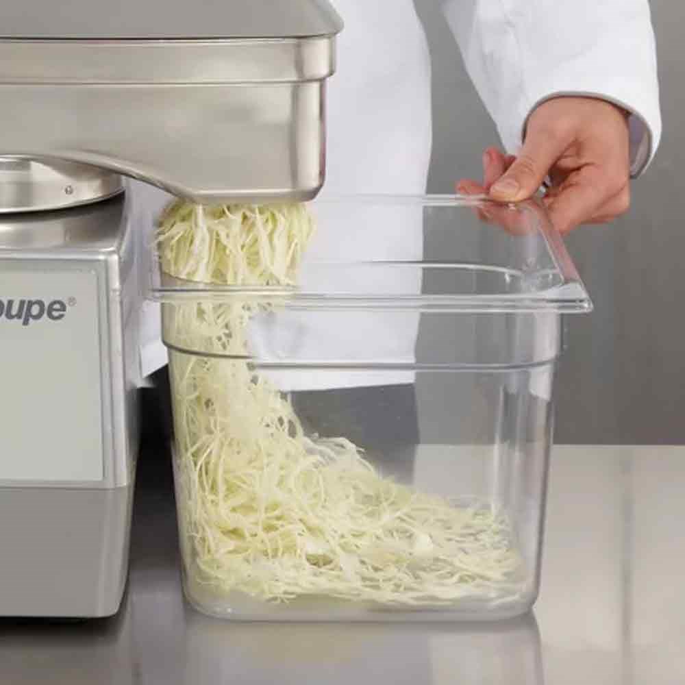 • Variable speed from 300 to 1000 rpm, ideal for cutting brittle vegetables at slow speeds and processing larger quantities at higher speeds