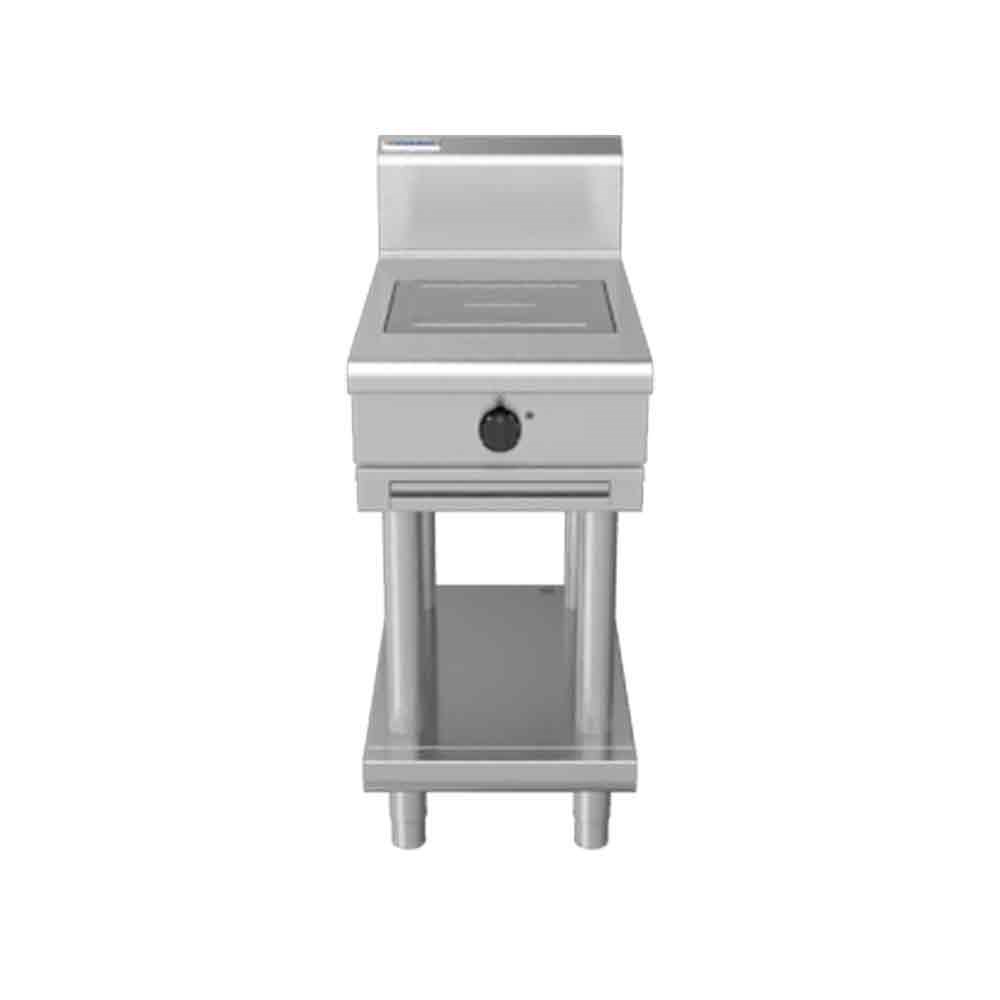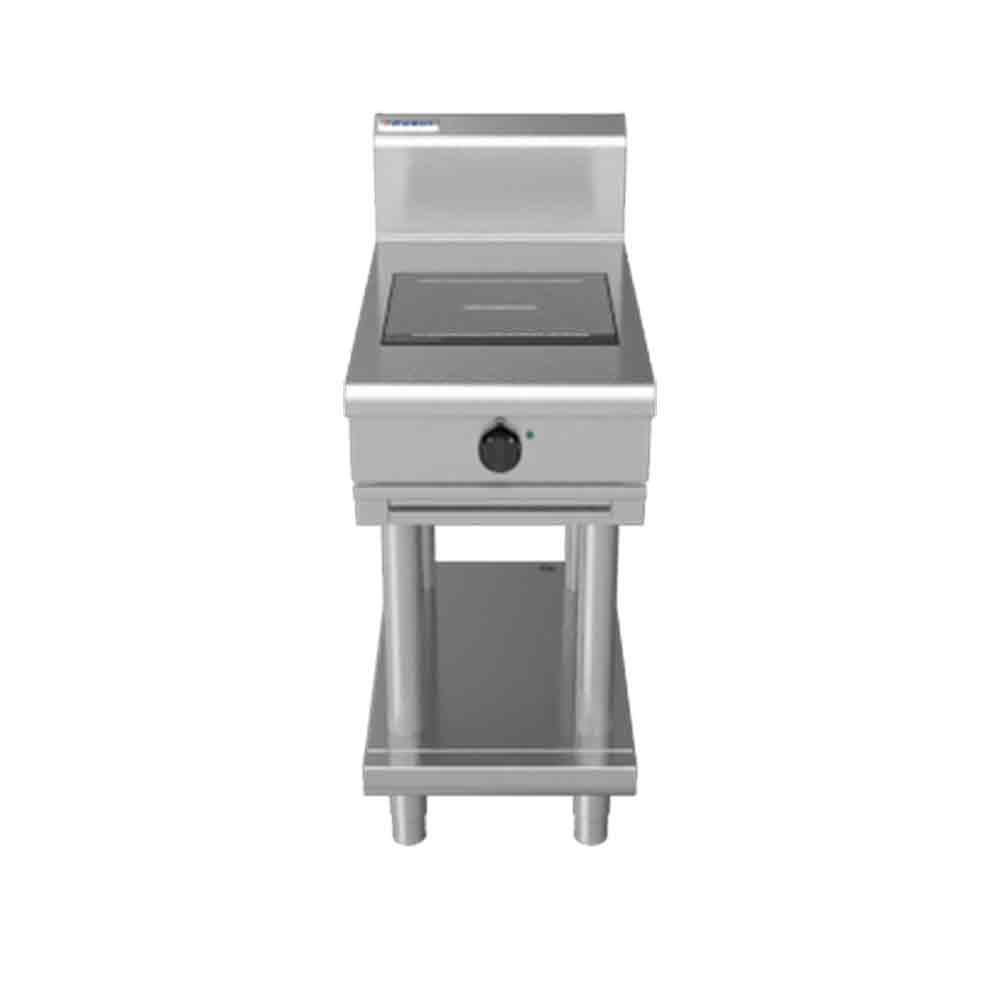 Discover the future of cooking with the Waldorf IN8100R3-LS electric induction cooktop on a leg stand. Featuring a 6mm thick ceramic glass cooking surface with a 3.5kW round heating zone, this model harnesses advanced induction technology to provide precise temperature control and rapid heating. It offers exceptional performance for your culinary creations. Its sleek design adds a touch of elegance to any professional kitchen. Elevate your cooking game with the Waldorf commercial cooking range.