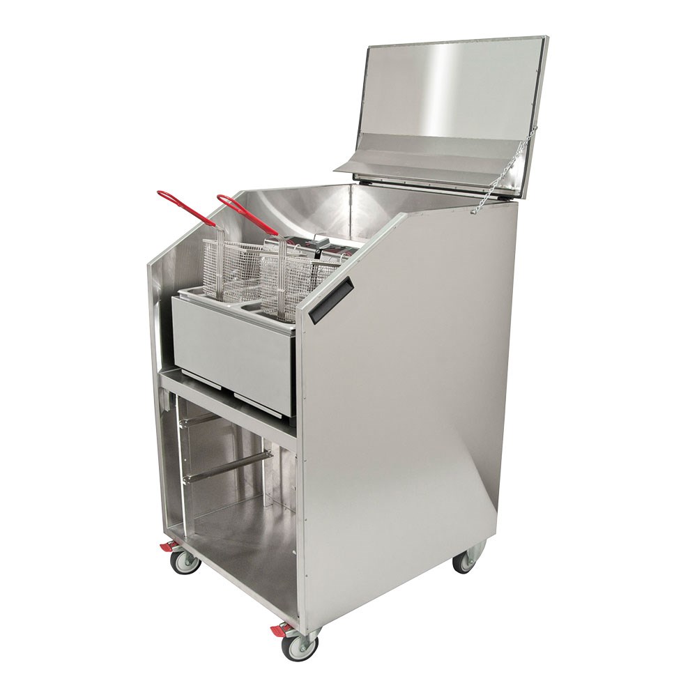 This unit reduces greasy deposits on surfaces, enhancing kitchen cleanliness and the working environment. Equipped with a storage area beneath the cooking zone and lockable swivel castors for mobility, it is ideal for use with countertop electrical appliances that comply with NCC power limits. Regular filter maintenance ensures ongoing performance, while the unit is not suitable for gas equipment or heat/humidity removal.