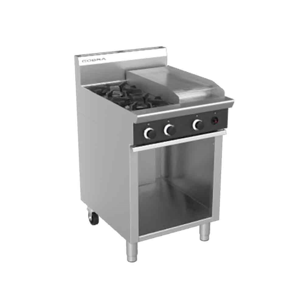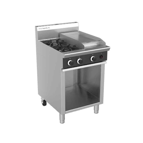 Elevate your commercial kitchen with the dynamic Cobra burner/griddle gas cooktop range. Sear meats to perfection and create delectable breakfast Favorites with ease. The integrated griddle enhances the cooktop's versatility, allowing you to prepare multiple dishes simultaneously. With a variety of widths and base options to choose from, customise the perfect configuration to suit your kitchen's unique requirements. Transform your culinary space and unlock endless cooking possibilities with the Cobra burner/griddle gas cooktop range.