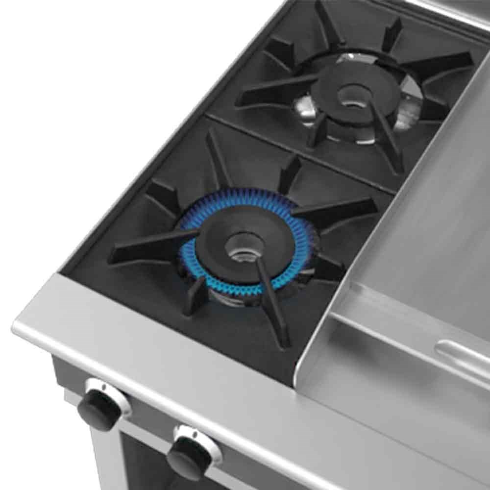 • 2 x 22MJ/hr available burners with 1 x 20MJ/hr griddle burner