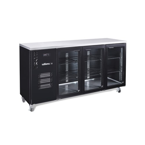 Williams Undercounter 3 Glass Door Fridge Black 640L HC3UGB
