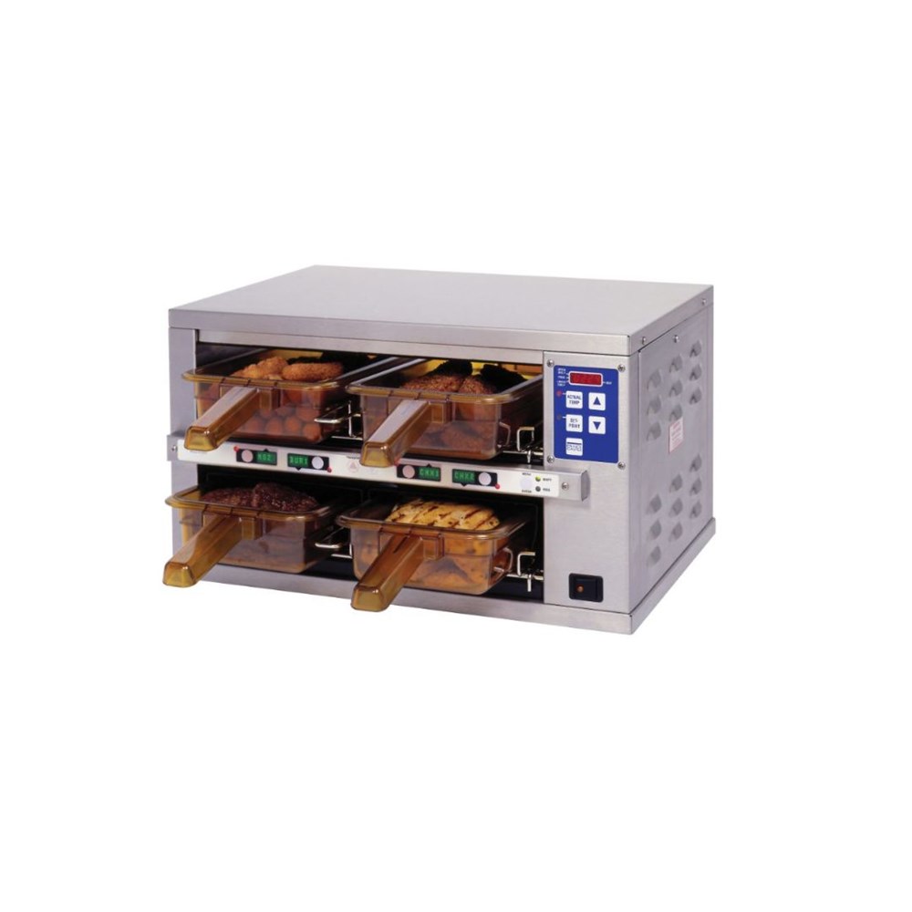 With two cavities that hold two third-size, 2 1/2” deep pans each, the unit can accommodate up to four pans, making it perfect for large-scale operations. The Reli-A-Temp infrared heater technology provides consistent food temperatures and eliminates edge drop-off, ensuring food stays at the perfect serving temperature without overcooking.