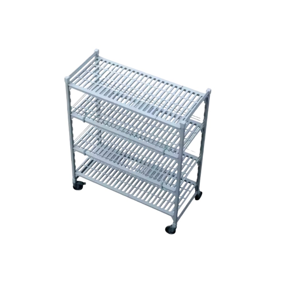 These silver 4-tier Shelving Units are constructed from polypropylene which offers a range of benefits including resistance to moisture, stains, and corrosion. While strong and durable, this material is lighter than steel making these shelves easier to adjust and manoeuvre compared to other units.