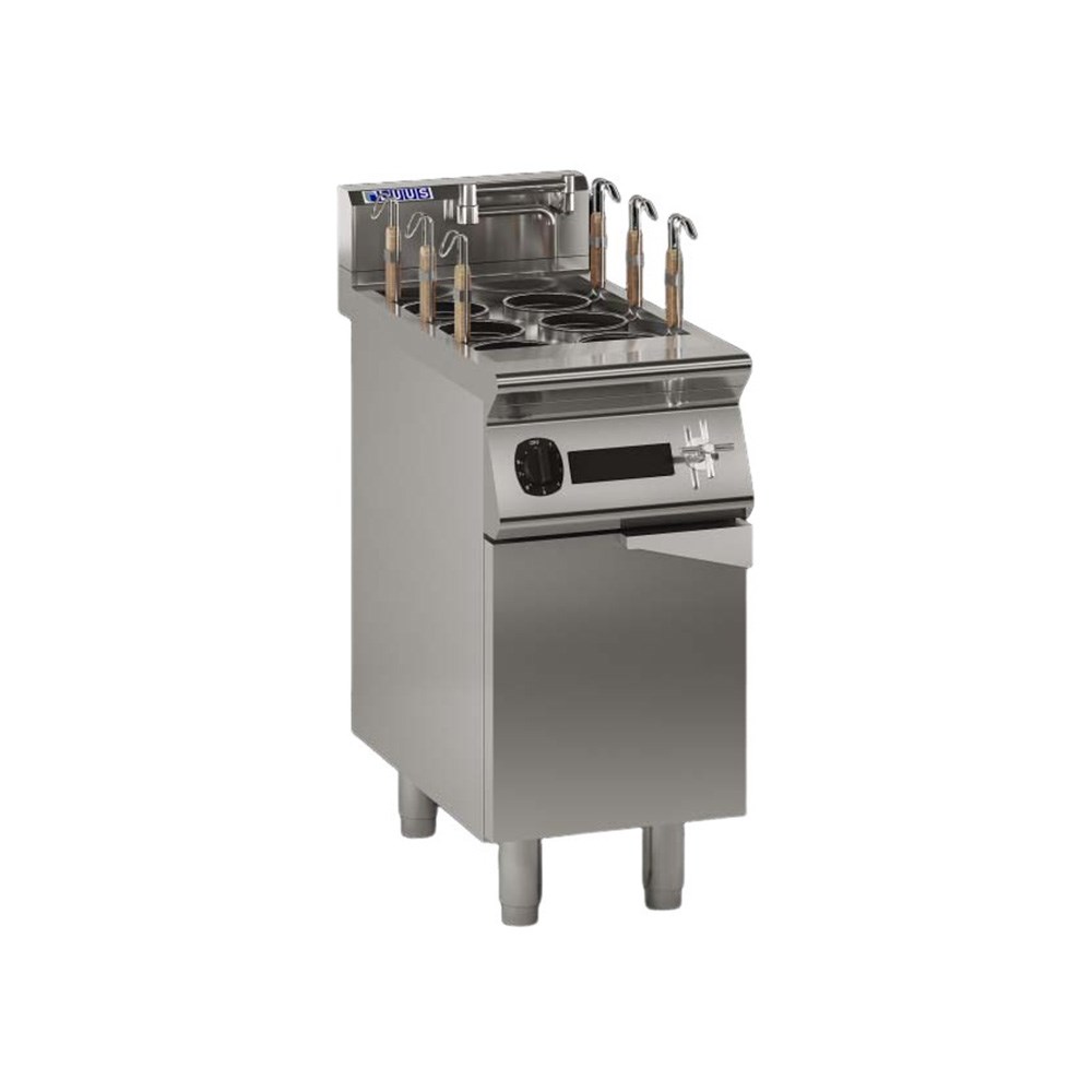 The Luus Induction Noodle and Pasta Cooker EN7-40 is perfect for cooking high volumes of noodles and pasta. It brings 12kW of power to boil water within 9 minutes only. With its advanced induction technology, it delivers rapid heating with precise temperature control, allowing for consistent cooking results and reduced energy consumption. With its six individual baskets, it enables simultaneous preparation of several noodle portions, making it perfect for high-demand settings like Asian restaurants, food courts, and catering services.