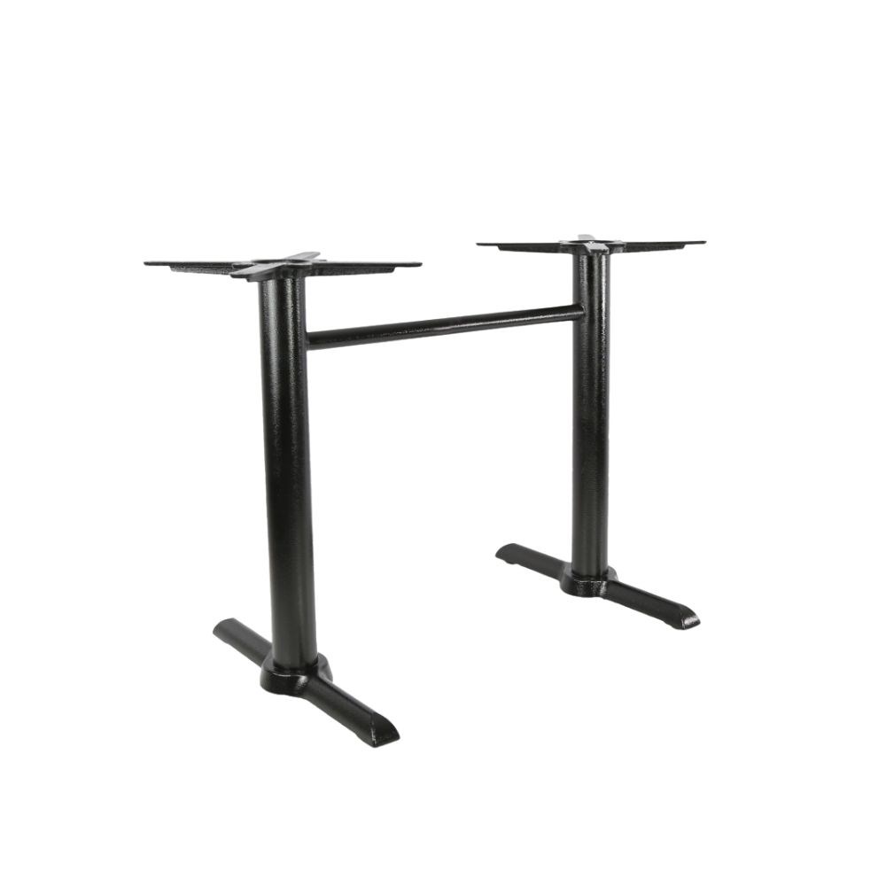 The Marlo Twin Table Base Black Durafurn combines durability and elegance, making it an ideal choice for high-traffic hospitality environments. Constructed from high-quality cast iron, the base features a sleek black powder-coated finish that adds sophistication to any dining space. Designed to support rectangular tops up to 1200x800mm and weighing up to 18kg, this base ensures stability even in bustling commercial settings. Its 76mm diameter pole and 450x450mm top cross provide robust support, while the adjustable feet guarantee a level stance, even on uneven surfaces.