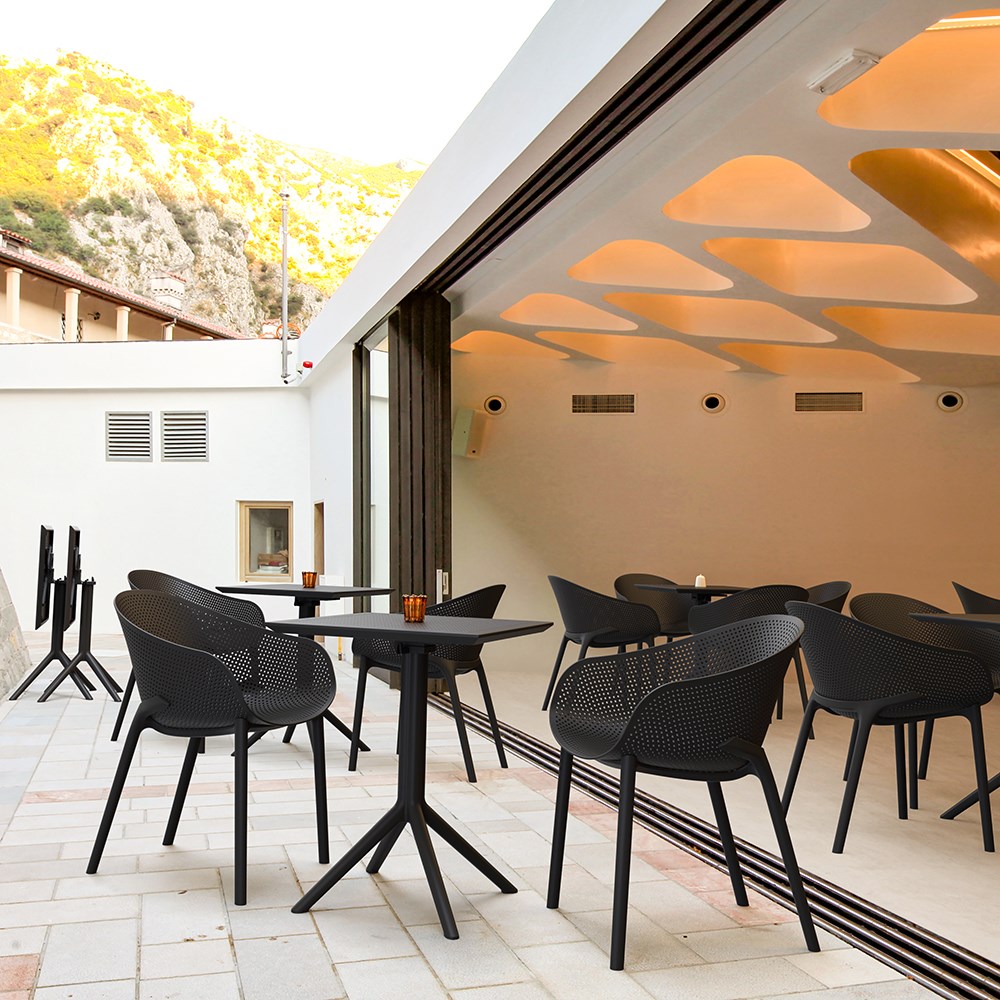 The Sky Table 70 by Siesta is a stylish and versatile piece designed for both indoor and outdoor environments. Crafted from high-quality polypropylene reinforced with glass fibre, it's built using the latest air moulding technology for added strength and durability. This table is UV stabilised, ensuring it won't fade even under prolonged exposure to sunlight, and it's also weather-resistant, making it ideal for commercial or residential use.