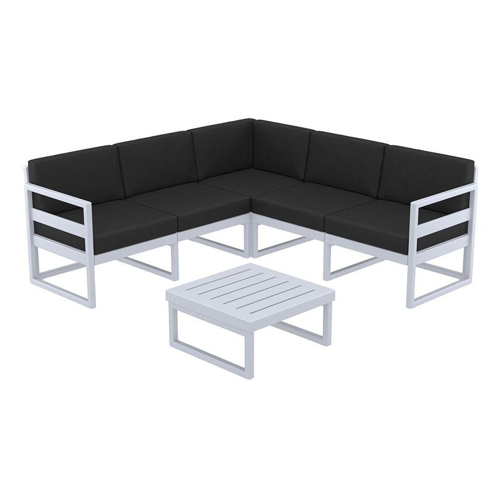Mykonos Lounge Corner Set Silver Grey & Black Cushions Siesta