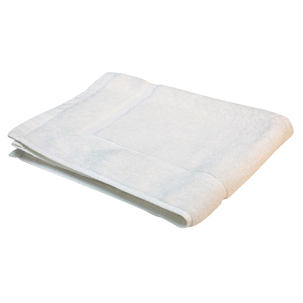 Essential Bath Mats are made from 100% combed cotton and double bleached for continuous whiteness. Single jacquard picture frame boarder within the towel makes easy bath mat recognition and attractive presentation. All towelling is made on the latest air jet weave machines with auto overlocked side seams eliminating fraying towel sides, woven extra thick for comfort and absorption makes these bath mats great value