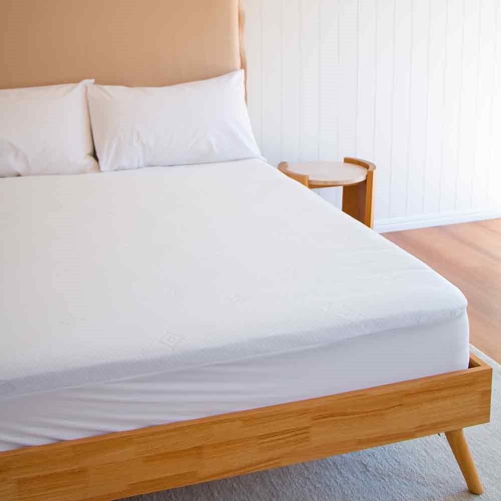 This queen size mattress protector fits snug with its stretchable knitted fabric and fitted wall, and it's also available in other sizes.