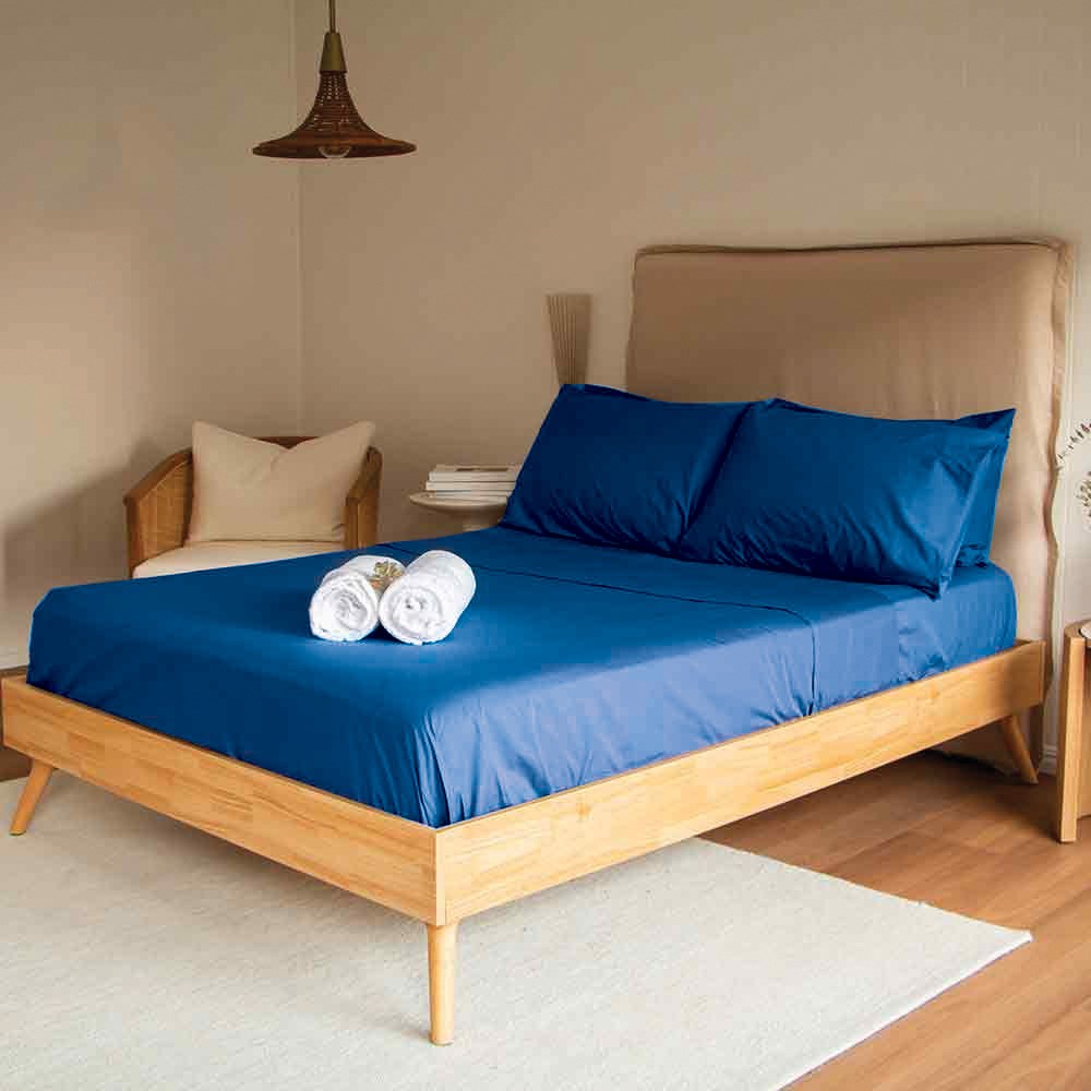 In classic blue navy colour, this flat sheet adds a sophisticated touch to your bedroom decor. Its versatile design effortlessly complements any bedroom style, from modern to traditional to eclectic.