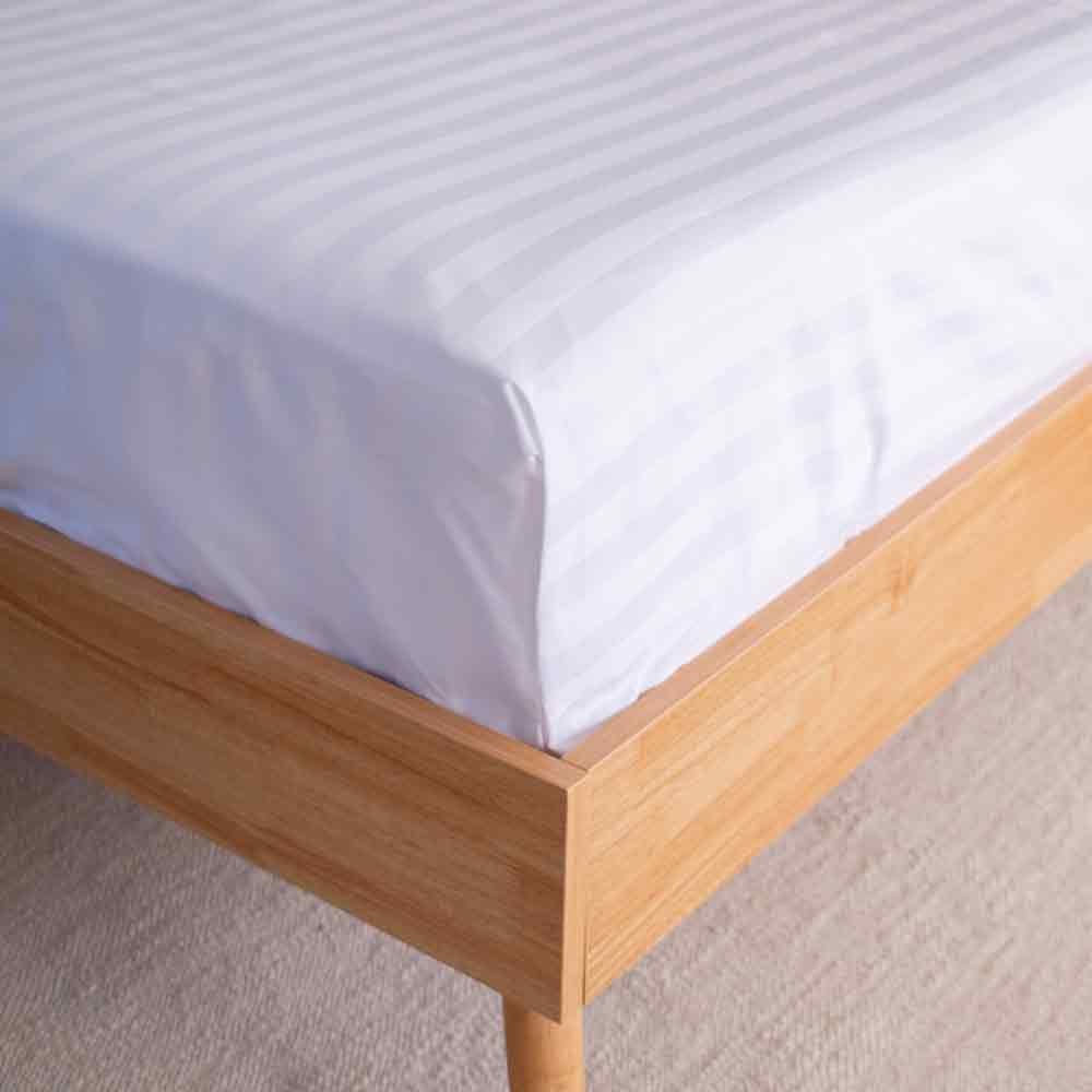 Introduce luxury and comfort with this Satin Stripe White Single Sized Bed Flat Sheet by Choyer your guest will appreciate. This product is part of a range that includes matching white Satin Strip flat sheets available in single, queen, and king sizes.