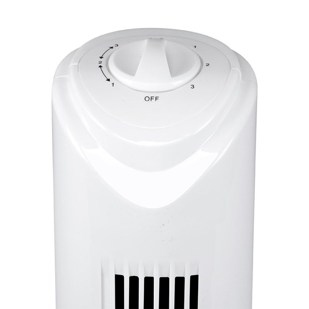 Ventilate your room using the Nero Oscillating Tower Fan 270x810mm in white. It offers 3-speed settings that let you control the airflow according to your preference. The oscillating function sweeps air across a wider area to evenly distribute coolness throughout the room. Its simple turn-dial operation makes it easy to use and has a one-handed control to adjust speed level and oscillation with ease.