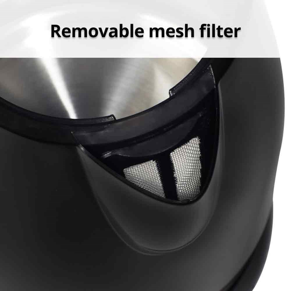 With a concealed element and no steam pipe, cleaning is effortless, maintaining the kettle's sleek appearance effortlessly. Boil dry protection guarantees safety by automatically shutting off when water levels are low. The removable mesh filter ensures a smooth pour, free from impurities. Featuring a 360-degree base, the Nero Kettle Bambino offers versatility, allowing for easy lifting and pouring from any angle.
