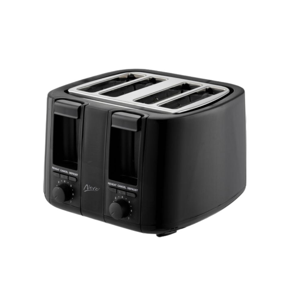 Elevate every breakfast experience with the Nero 4 Slice Toaster in elegant black. This modern masterpiece features a 7-setting browning dial, allowing you to achieve your desired toasting perfection. The wide toasting slots eagerly await your favourite bread, and the convenient high lift lever ensures effortless retrieval of your delectably toasted creations.