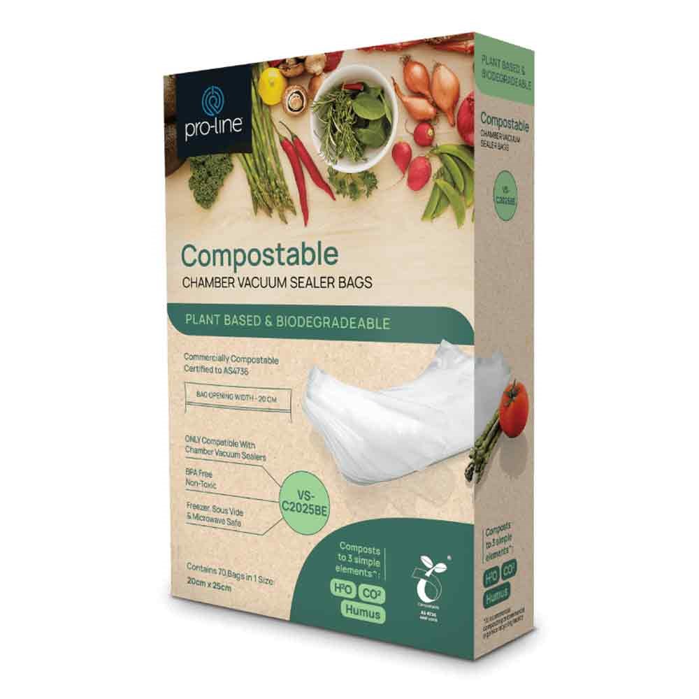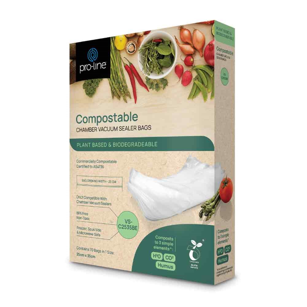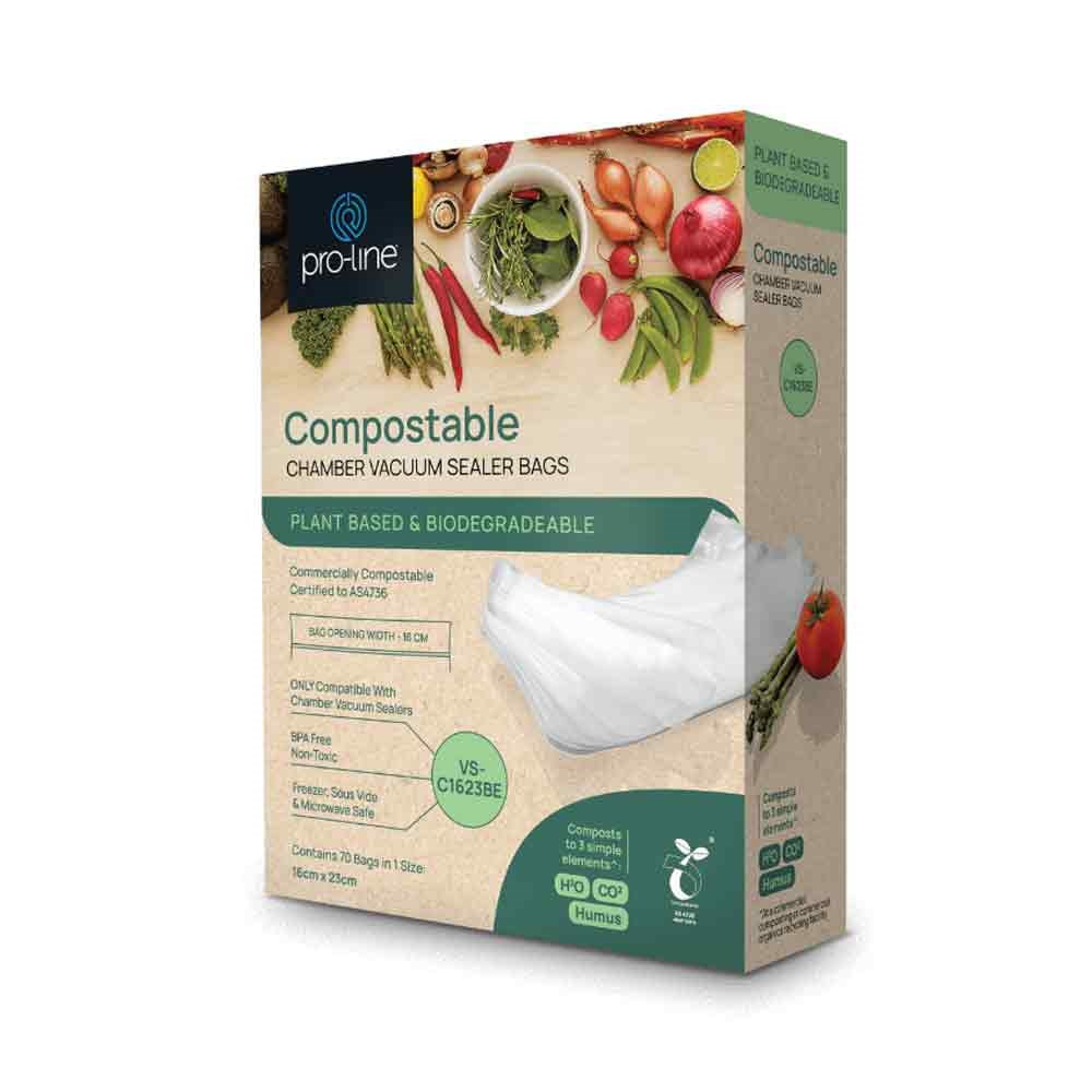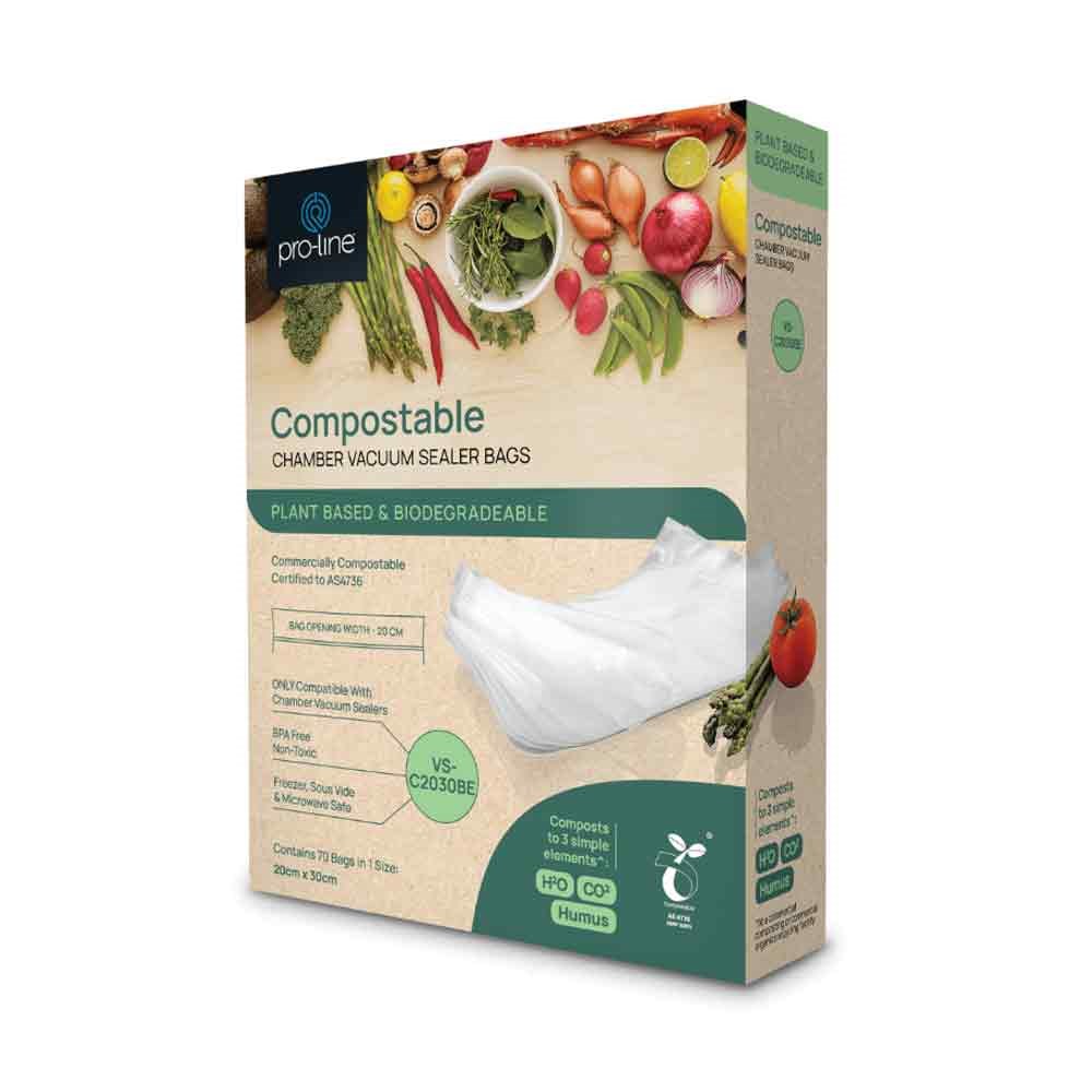 The Vacuum Seal Channel Bags Compost Pro-line provide an eco-friendly alternative for food storage without sacrificing performance. Made from plant-based, biodegradable materials, these bags offer the same functionality as traditional plastic but with the added benefit of being compostable.