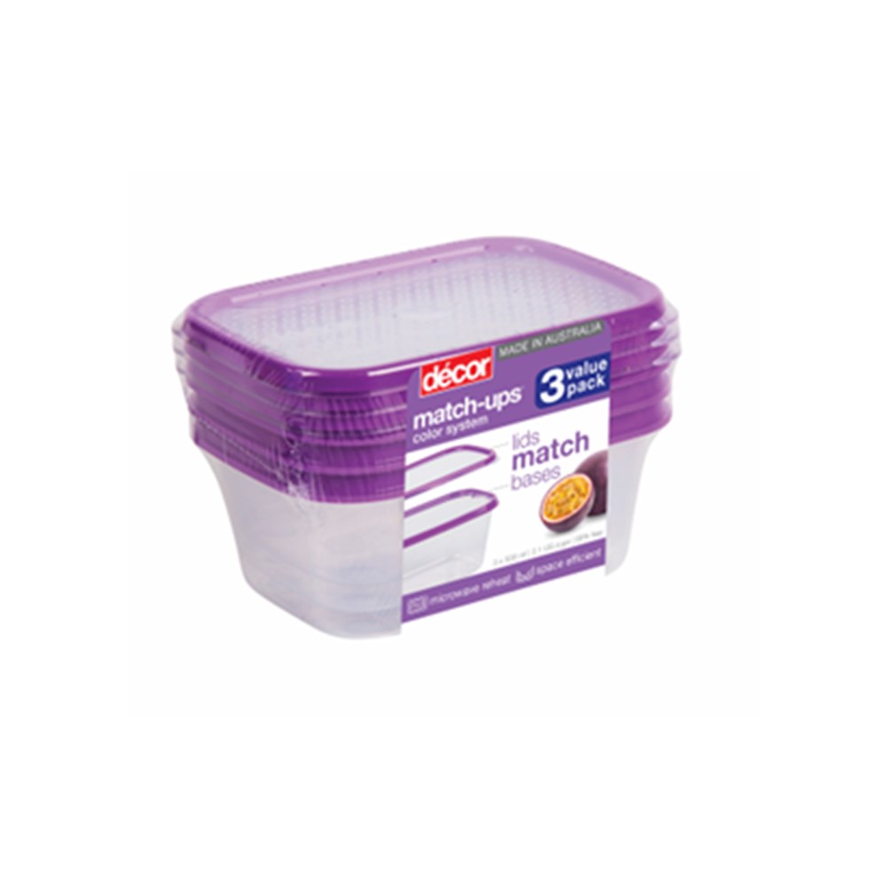 Find the right lid every time with Decor Match-upsĀ® Basics. The ultimate container has a smart lid colour match system where lids and bases match in colour, any lid matches any red base - its so simple and smart! Match-upsĀ® Basics stores also feature scratch resistant lids and handy graduations. Containers nest inside each other when empty saving you space.