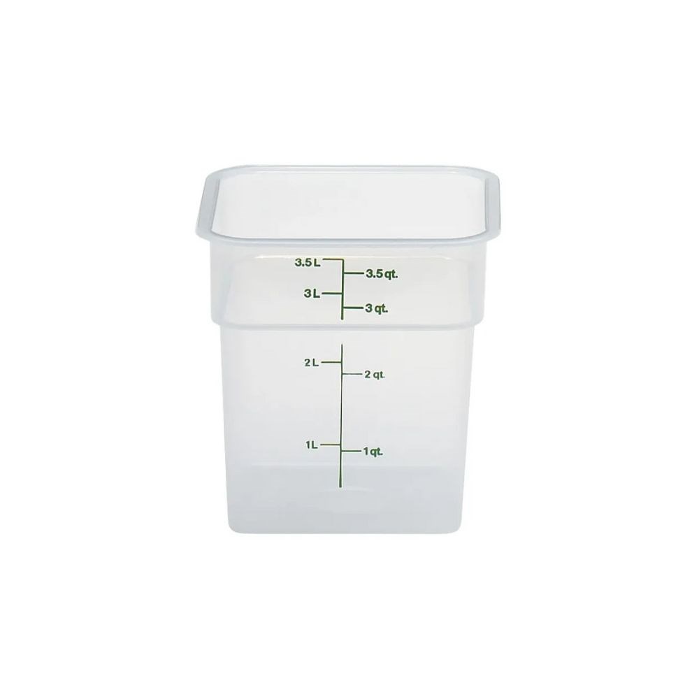 The Storage Container Square 3.8L Translucent Cambro is made from hard-wearing polypropylene and built for commercial food storage. Its translucent design makes it easy to identify contents at a glance, while the 3.8-litre capacity offers ample space for ingredients or leftovers.