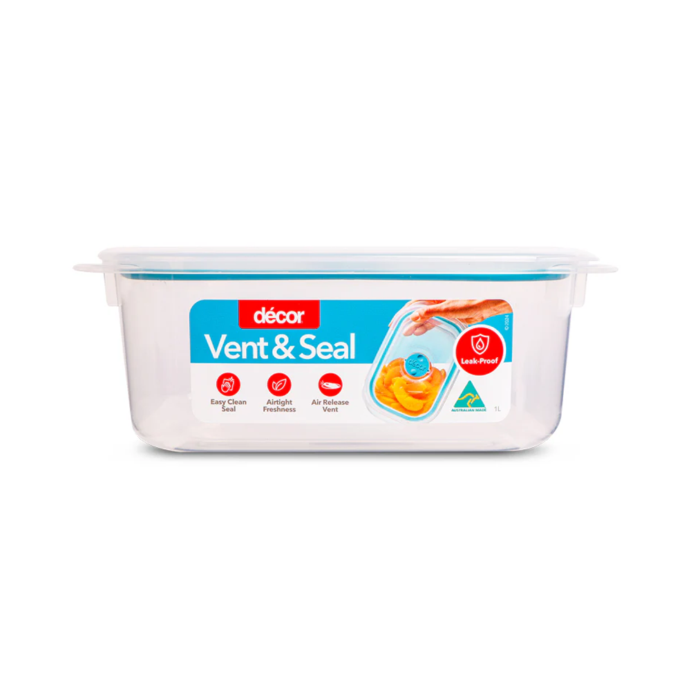 Vent & Seal Square Container 1L 210x134x51mm Plastic Decor 2663937