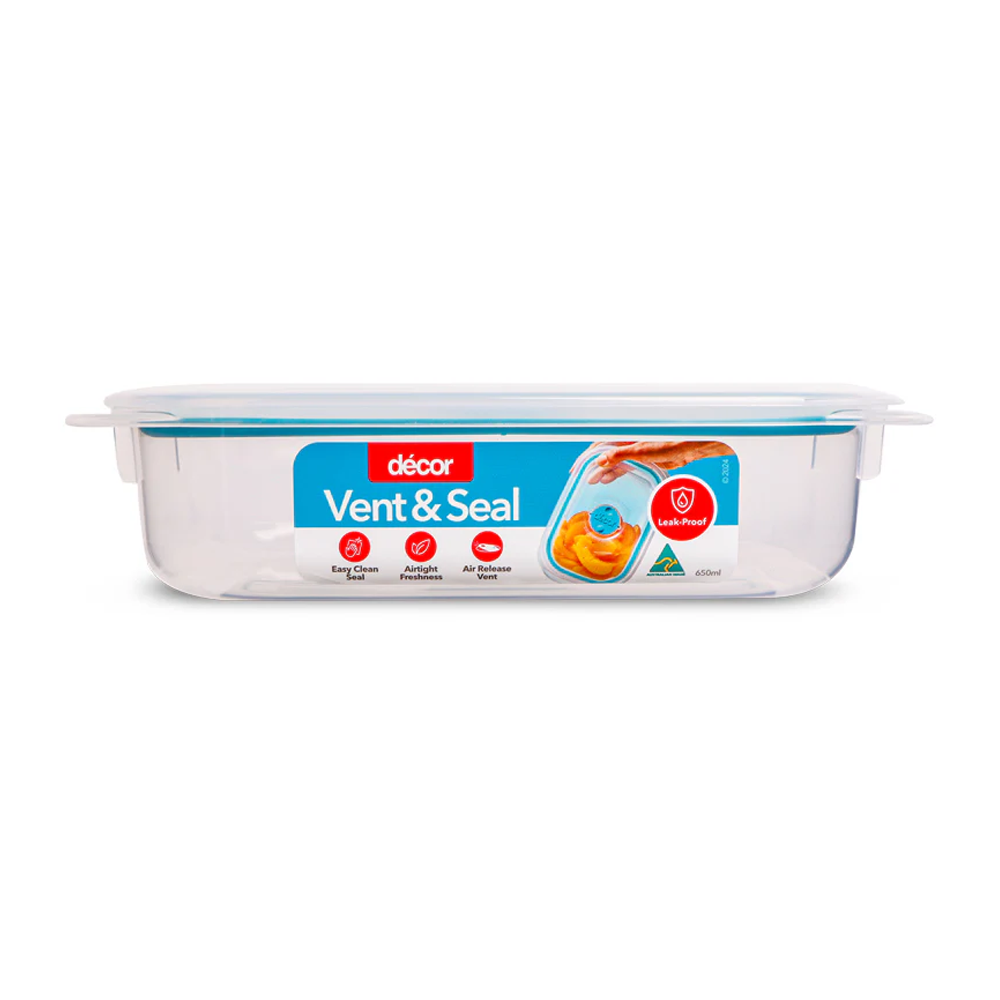 Vent & Seal Oblong Container 650ml 210x134x51mm Plastic Decor