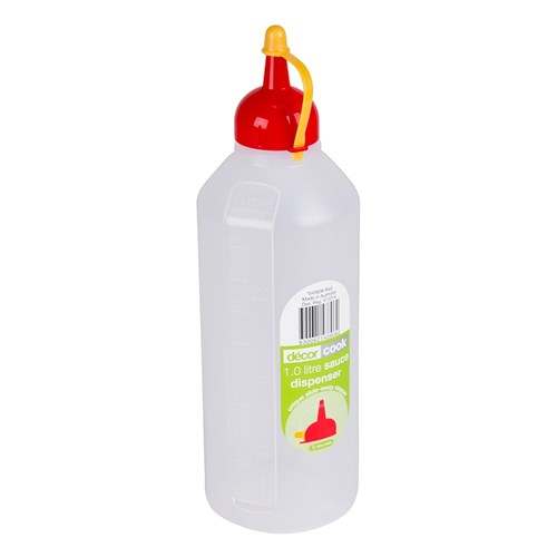 The Squeeze Sauce Bottle Clear 1L has a versatile, simple design that is ideal for both back-of-house and front-of-house applications to serve a variety of condiments. With a slide-away stopper cap, this cap remains tethered to the bottle once removed so you will never lose a lid again. Also, squeeze plastic helps you to use every last drop of sauce inside. This product also can be used for dispensing salad dressings, oil, and cake decorating.