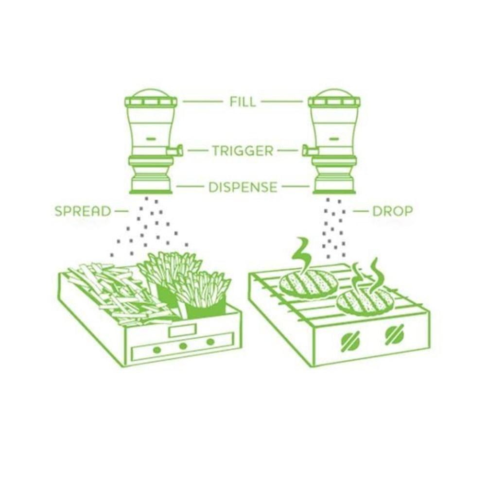 Quickly, deliver perfect portions of granular seasonings with an InSeason™ Salt and Seasoning Dispenser by Server. Dispensing measured portions helps ensure consistent flavour in menu items and promotes nutritional accuracy. The wide cone spread pattern is designed for large area applications like a fry bin. Single hand operation speeds workflow.