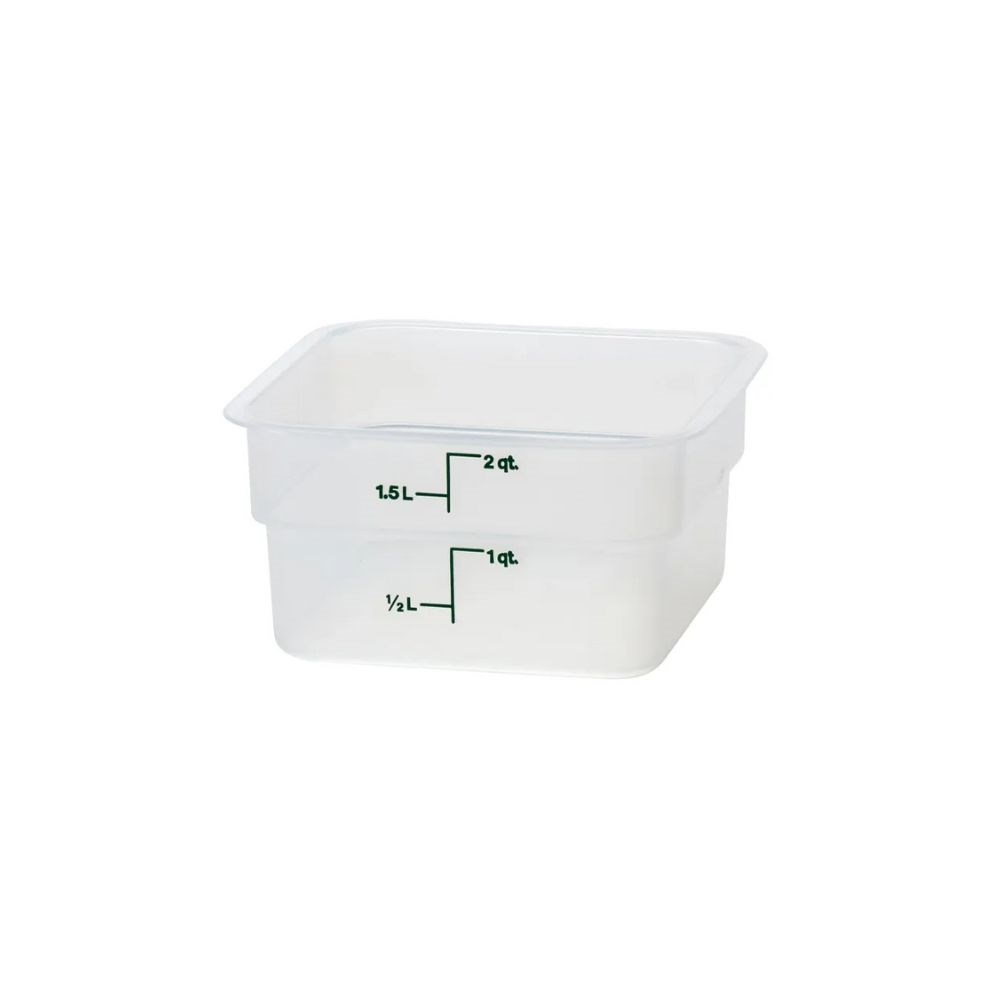 The Storage Container Square 1.9L Translucent Cambro is crafted from durable polypropylene and built for commercial kitchen use. With a 1.9-litre capacity and translucent finish, it allows for easy content identification while maintaining food-safe standards.