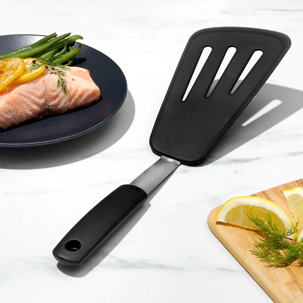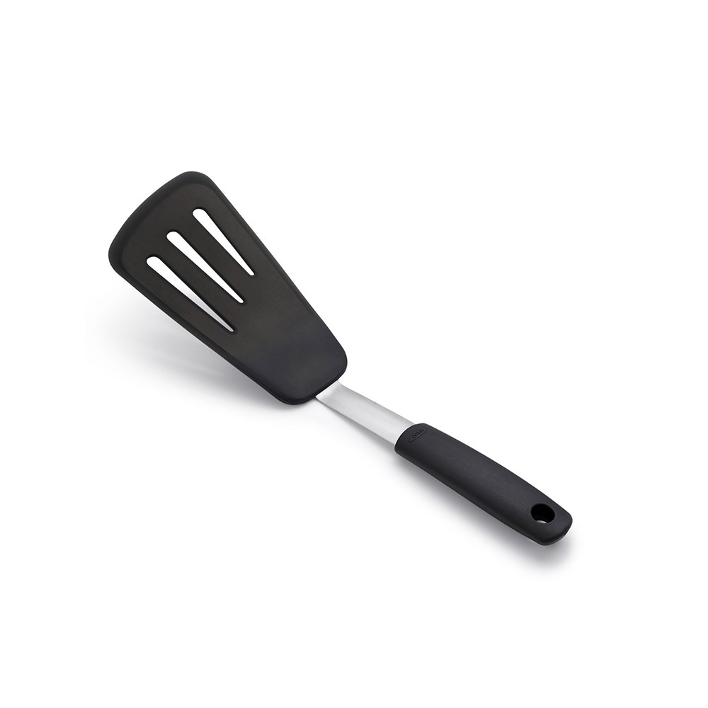 Turner Omelette Silicone ombine the strength of stainless steel with the heat resistance and non-stick friendliness of a silicone outer layer. Thin, flexible edges glide under foods in the pan to keep them intact. The Omelet Turner is ideal for flipping longer, delicate foods.