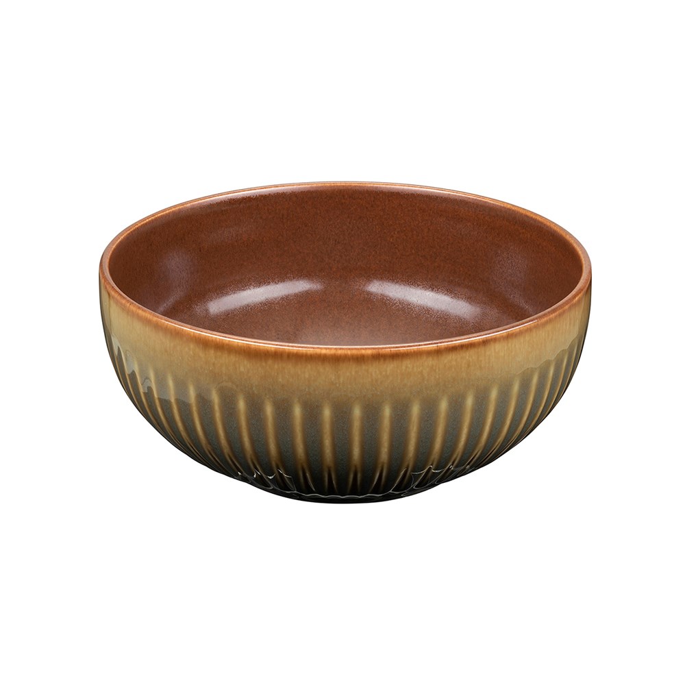 This Cottage Bowl in Cinnamon is a modern take on retro style. This range of plates, bowls and servingware by Luzerne features textured patterns and a reactive glaze in a nod to an era when food was a time to come together.