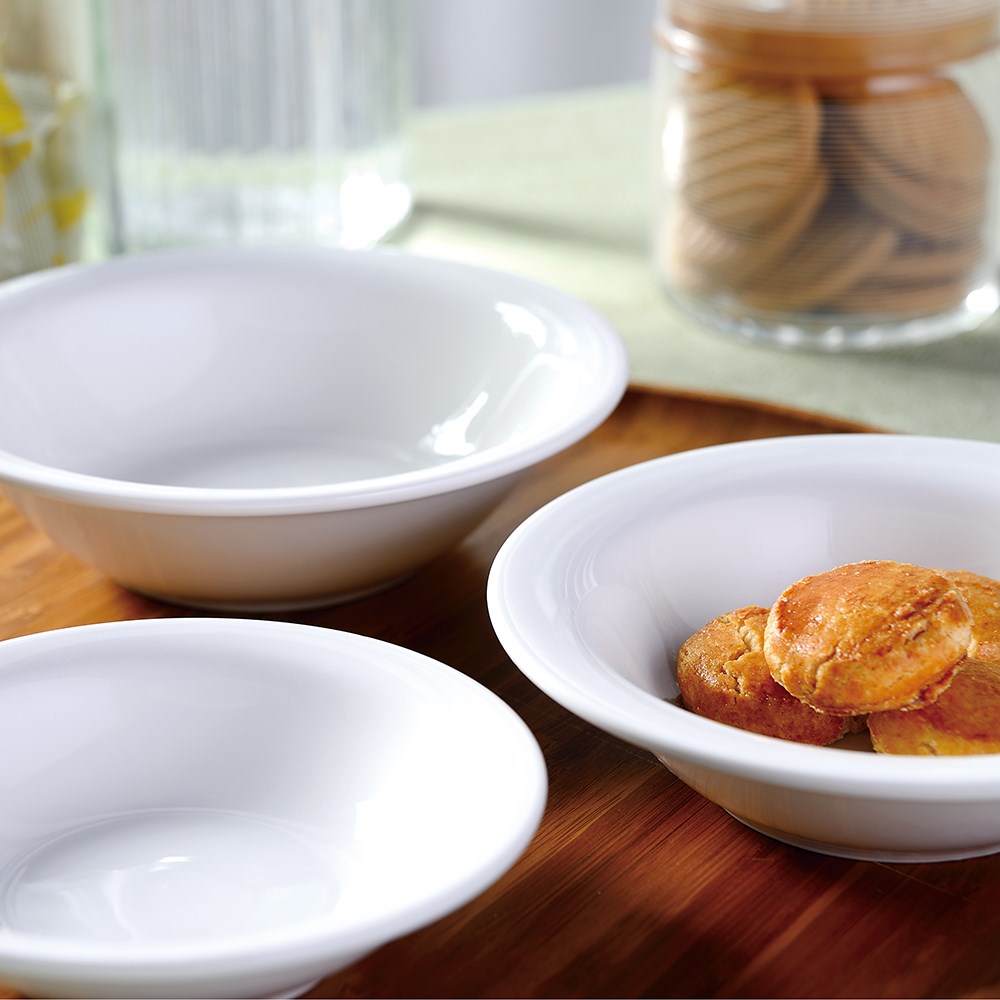 This Echelon's white fruit bowl is a practical tableware solution for restaurants, cafes, catering events, banquets, weddings, and healthcare. The diameter is 127mm. This classic bowl is high quality and functional product with a minimum environmental impact. Plus, since this chic design bowl is made from commercial-grade porcelain, it will provide an easy clean and maintenance option in your busy settlements.
