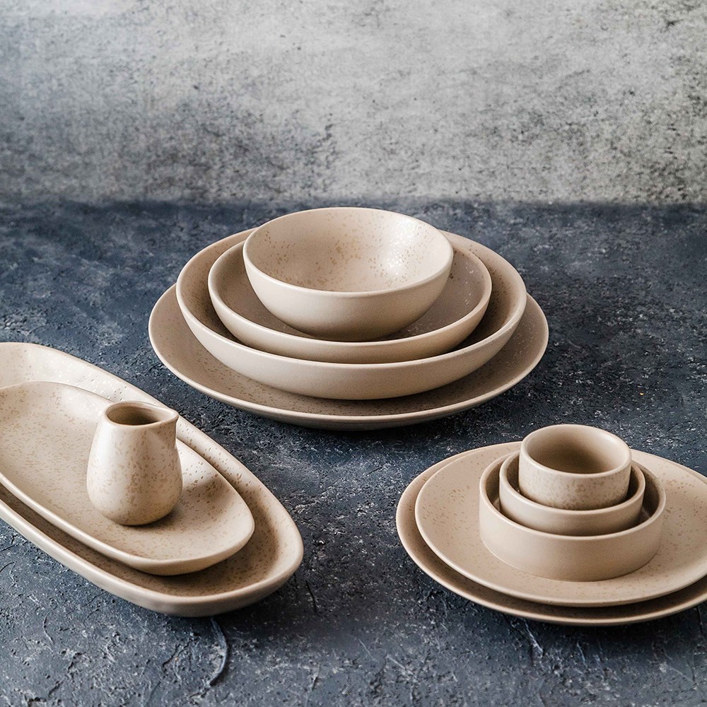 Crockery with matte or semi-matt finishes are not suitable for use with serrated steak knives or dishes requiring heavy cutting motions. Markings can occur these finishes and we recommend regular cleaning with a creme cleanser or gumption paste to remove scratch marks and maintain the finish.