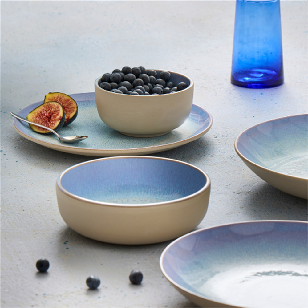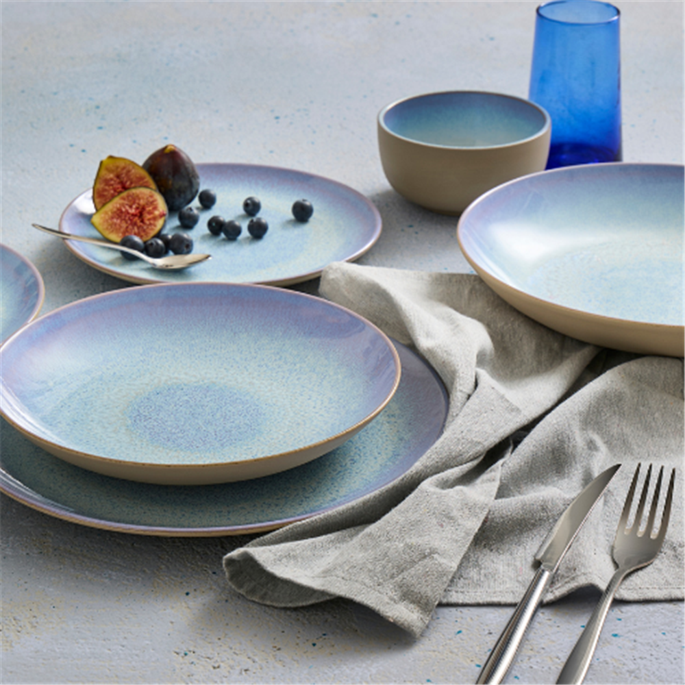 The Azure Coupe Plate 270mm Accolade combines elegance with durability, making it perfect for professional dining settings. Its gradient sky-blue glossy interior contrasts beautifully with the matte exterior, creating a striking visual effect that enhances food presentation.