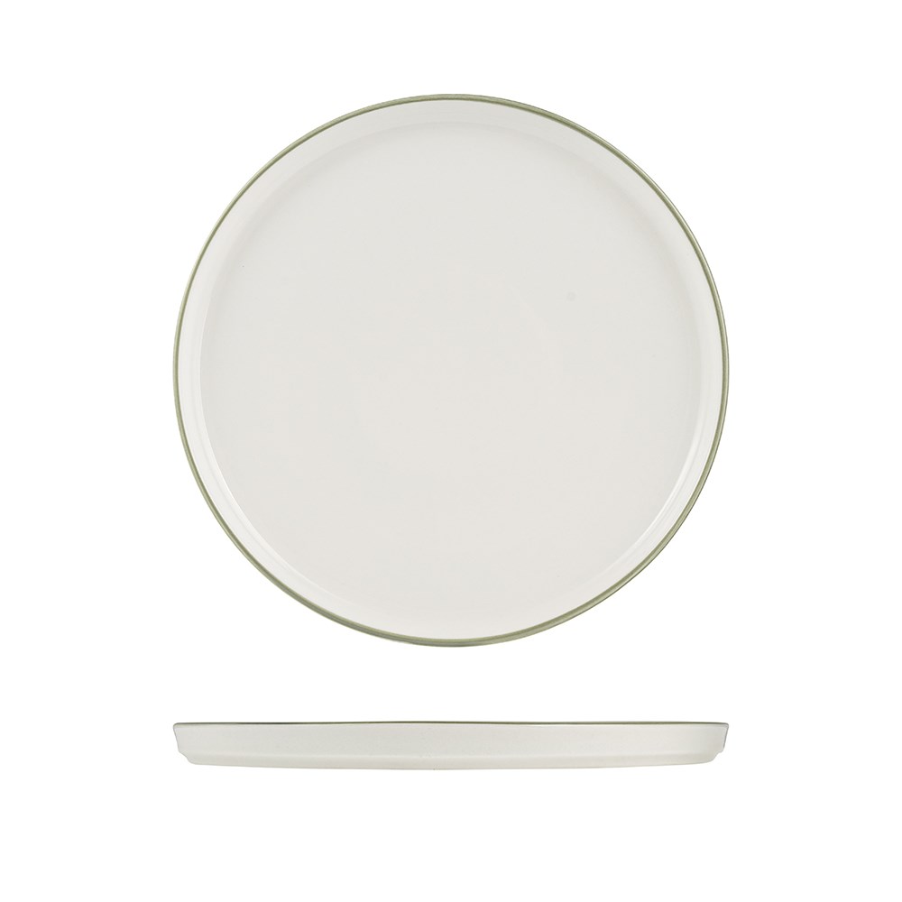 The Homestead 300mm Walled Plate features a soft creamy white surface with a hand painted olive band on all pieces in this range by NMC. This collection of sauce dishes, ramekins, plates and bowls combine elegance and functionality setting the perfect backdrop for your menu.