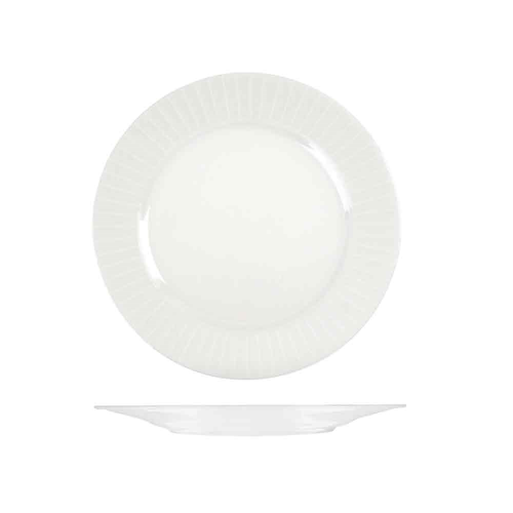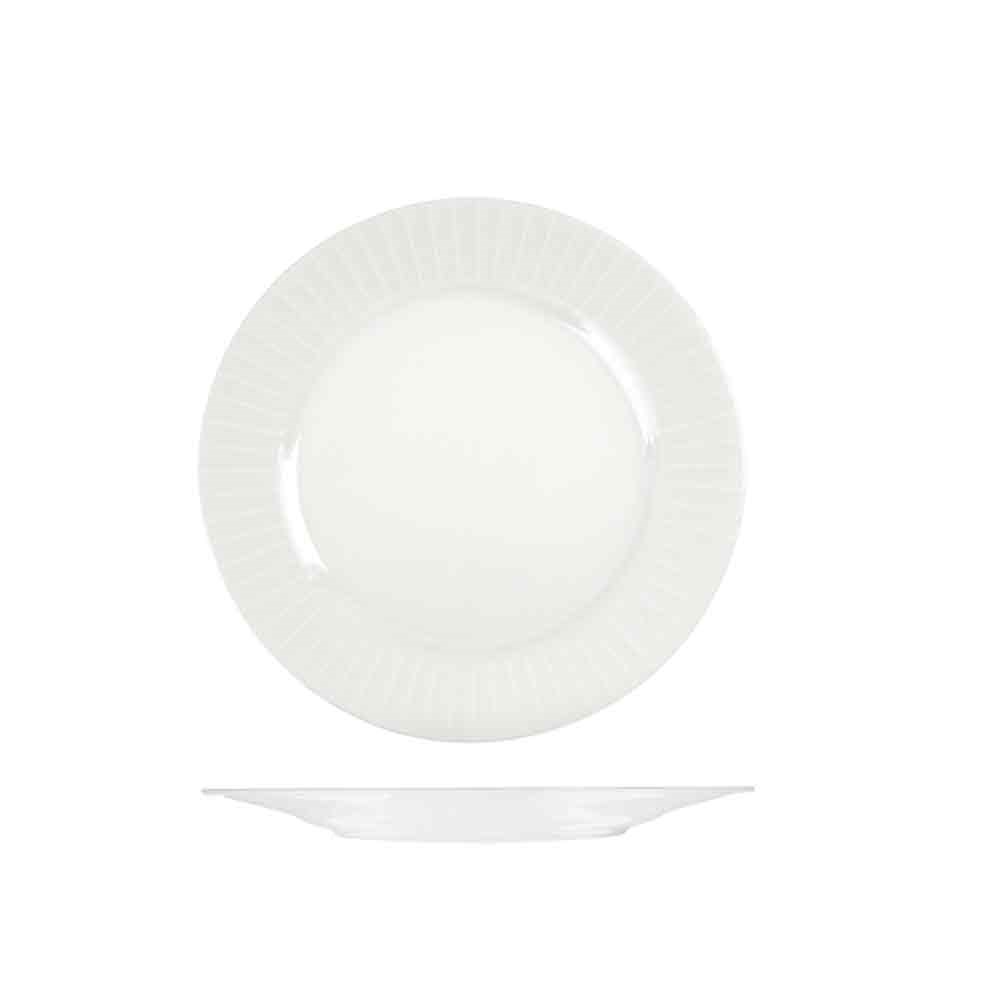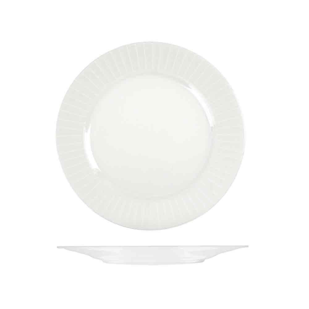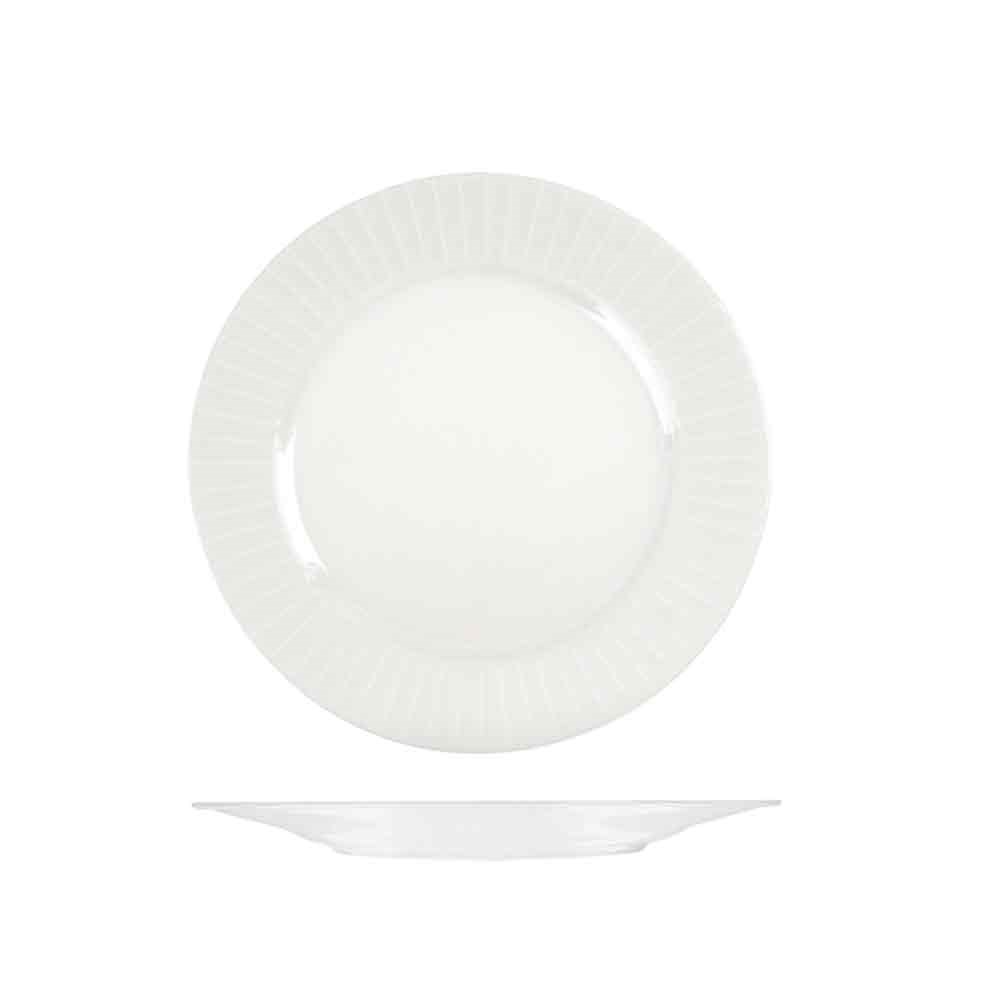 These Metropolis Round Plates by RAK Porcelain are a sophisticated and stylish choice for any dining setting. Featuring a crisp white surface with wide, panelled rims, these plates add a contemporary touch to any table. Their generous sizes make them ideal for serving appetisers, desserts, and small dishes, while the refined design elevates the presentation of each dish.
